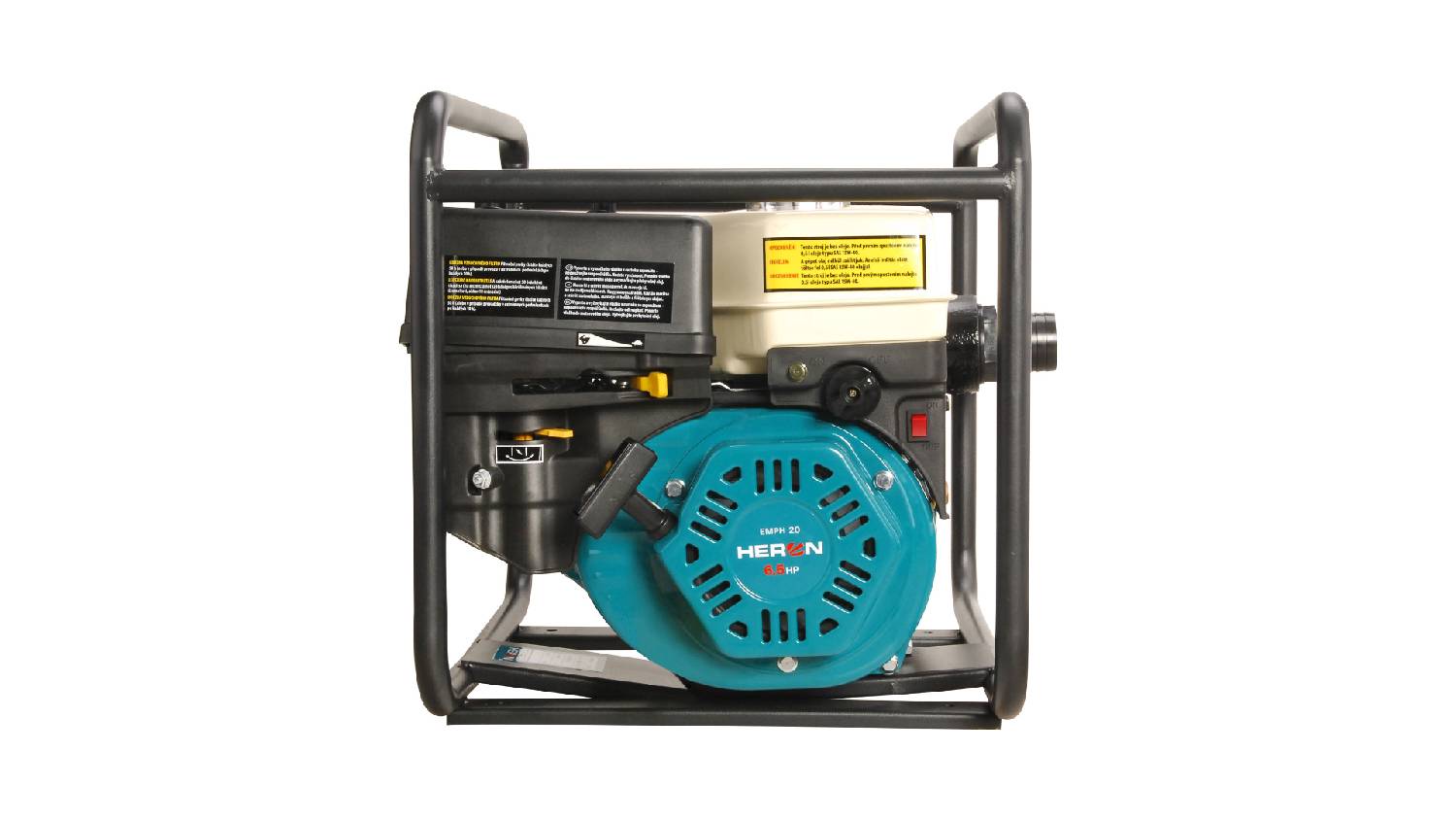 The Heron Engine Powered High-Pressure Water Pump 6.5hp delivers impressive output for demanding applications. With its powerful engine and high-pressure capability, this pump can easily be used for your home or business, power through tough jobs, and last for years to come. It works great with irrigation and sprinkler systems and is ideal for pumping water up to header storage tanks.
