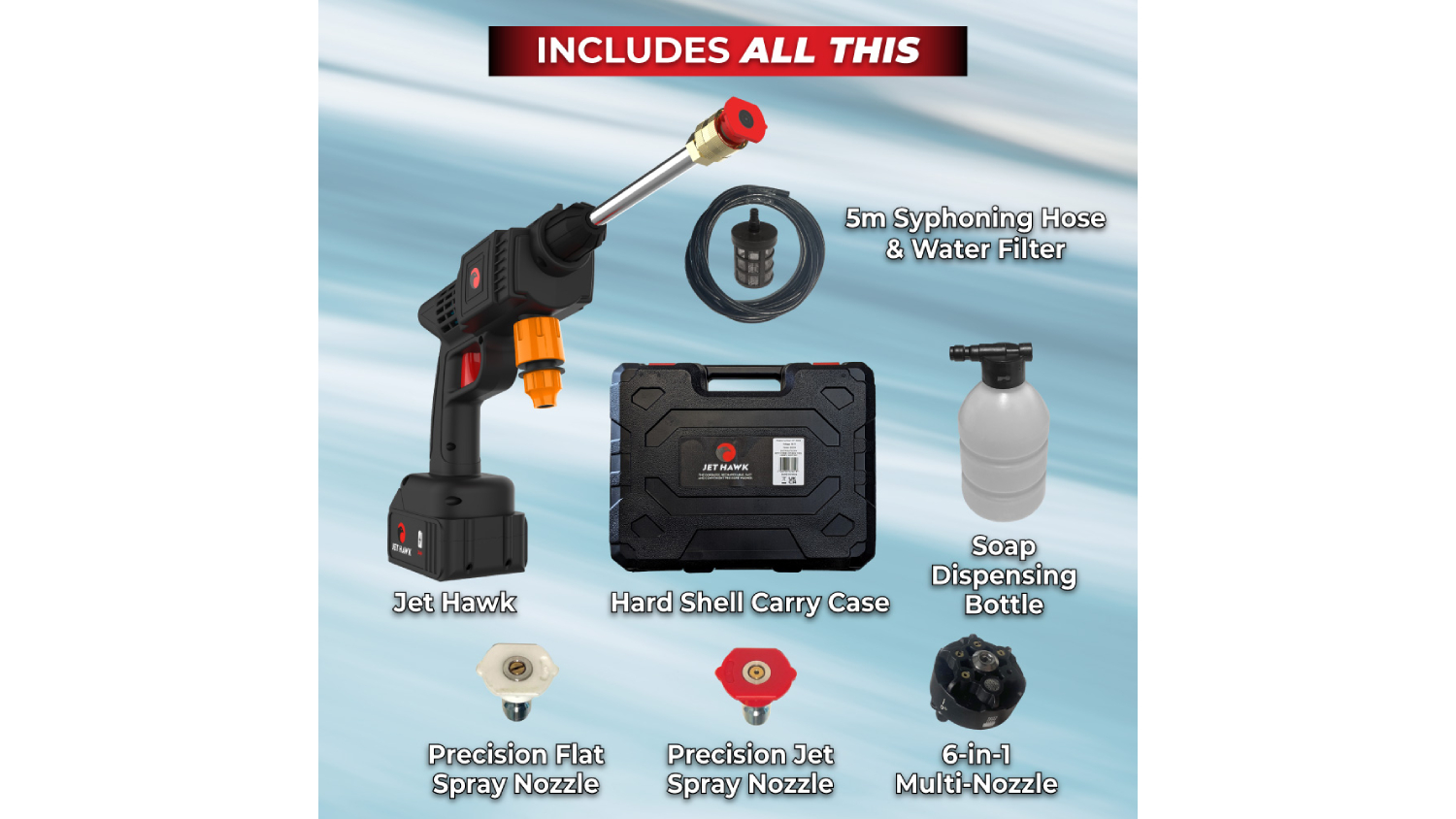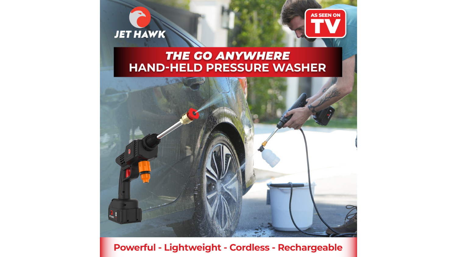 Transform your cleaning routine with the Jet Hawk Portable Cordless Pressure Washer! This versatile tool delivers 5 times the power of a garden hose. It can be used anywhere, thanks to its rechargeable battery and ability to connect to a hose or draw clean water from a bucket, bath, or pool. It’s the perfect solution for jet-cleaning your car, bike, outdoor furniture, or balcony.
