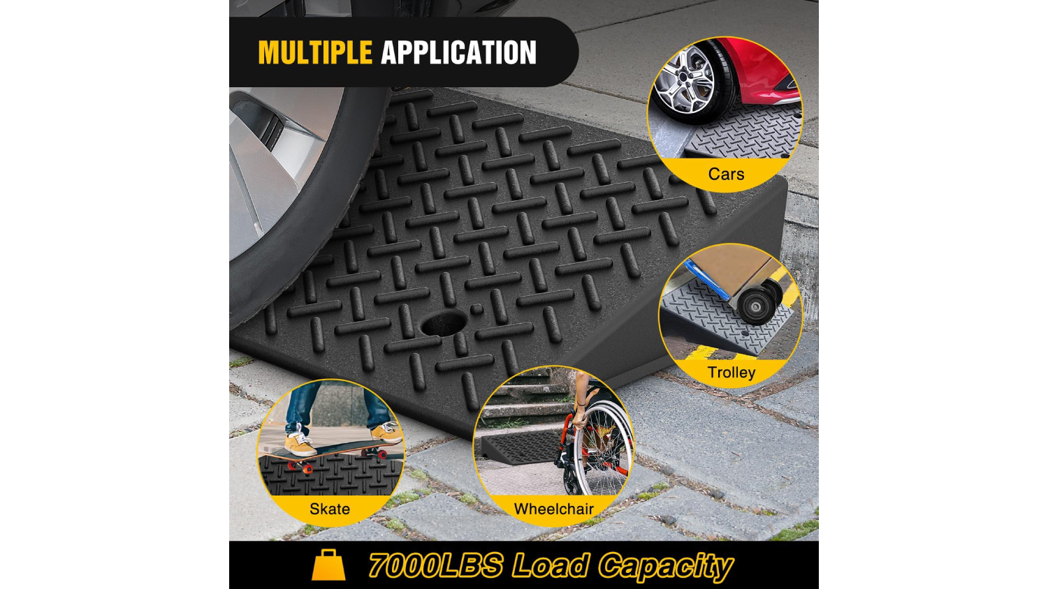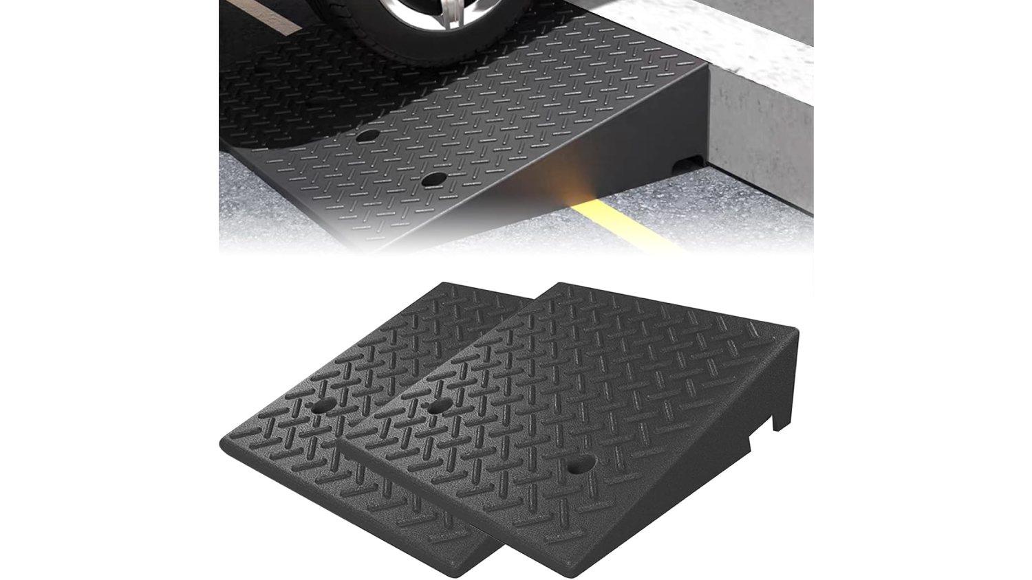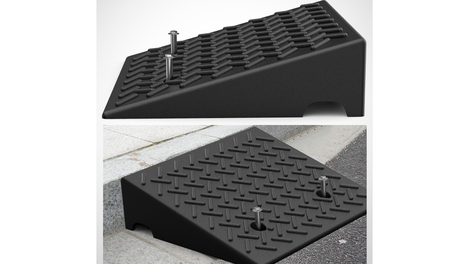 Whether at home or on the go, the Kmall Sturdy Curb Accessibility Ramp is your reliable mobility solution. Built from high-quality rubber, this 2-piece ramp set is tough, portable, and designed to handle heavy use. With a non-slip surface for maximum grip even in wet conditions, it’s perfect for wheelchairs, bicycles, cars, trucks, trolleys, and more. Plus, each ramp has pre-drilled holes to make installation a breeze.