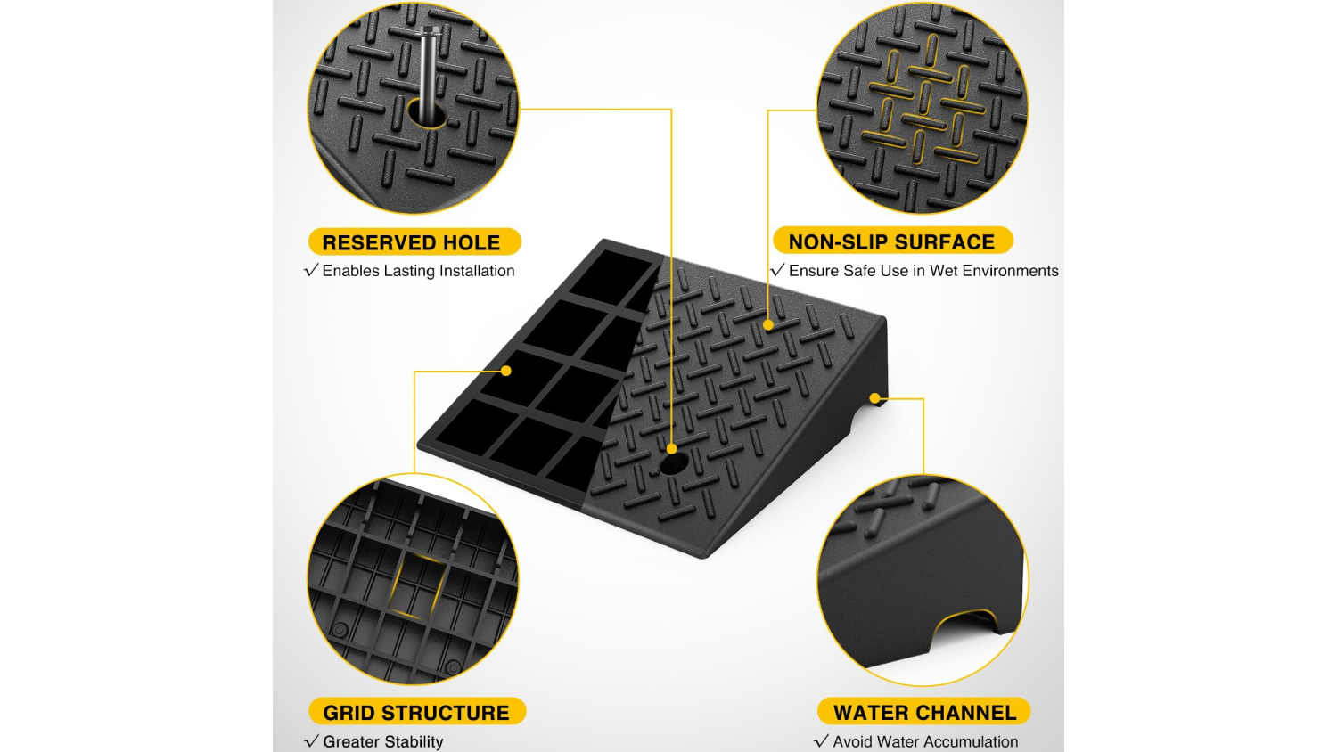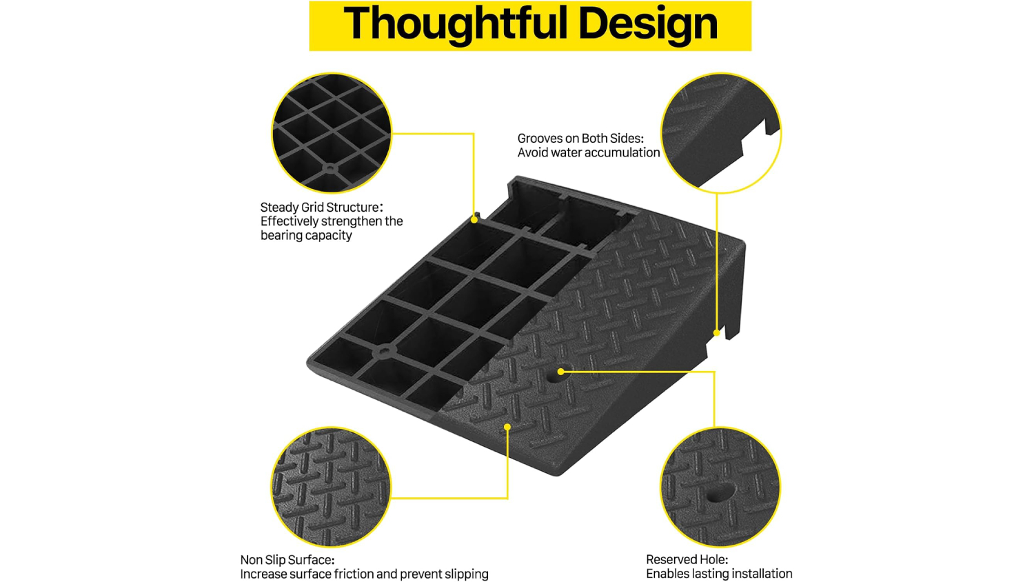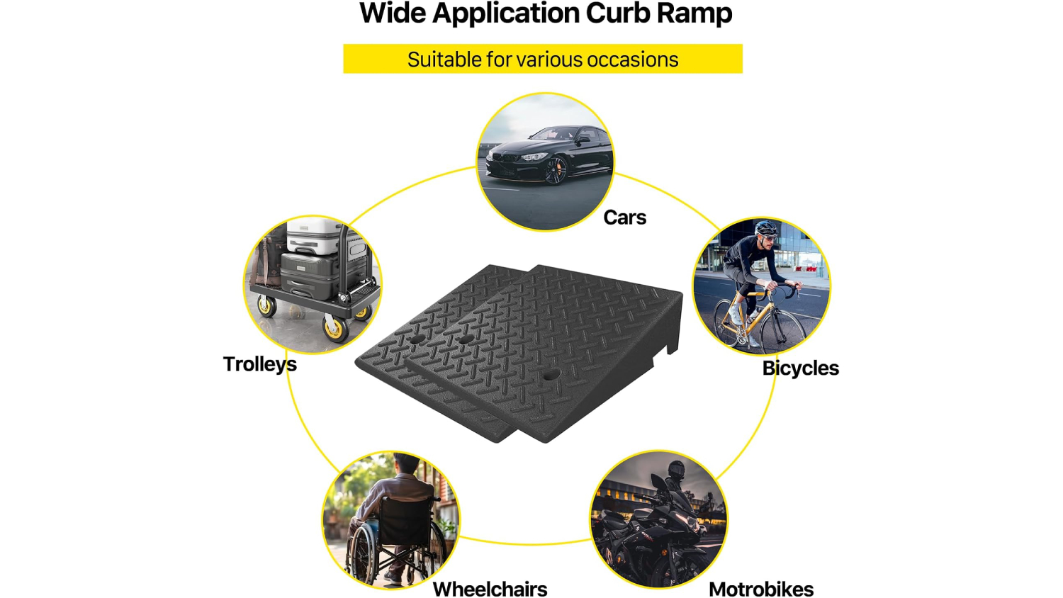 Whether at home or on the go, the Kmall Sturdy Curb Accessibility Ramp is your reliable mobility solution. Built from high-quality rubber, this 2-piece ramp set is tough, portable, and designed to handle heavy use. With a non-slip surface for maximum grip even in wet conditions, it’s perfect for wheelchairs, bicycles, cars, trucks, trolleys, and more. Plus, each ramp has pre-drilled holes to make installation a breeze.