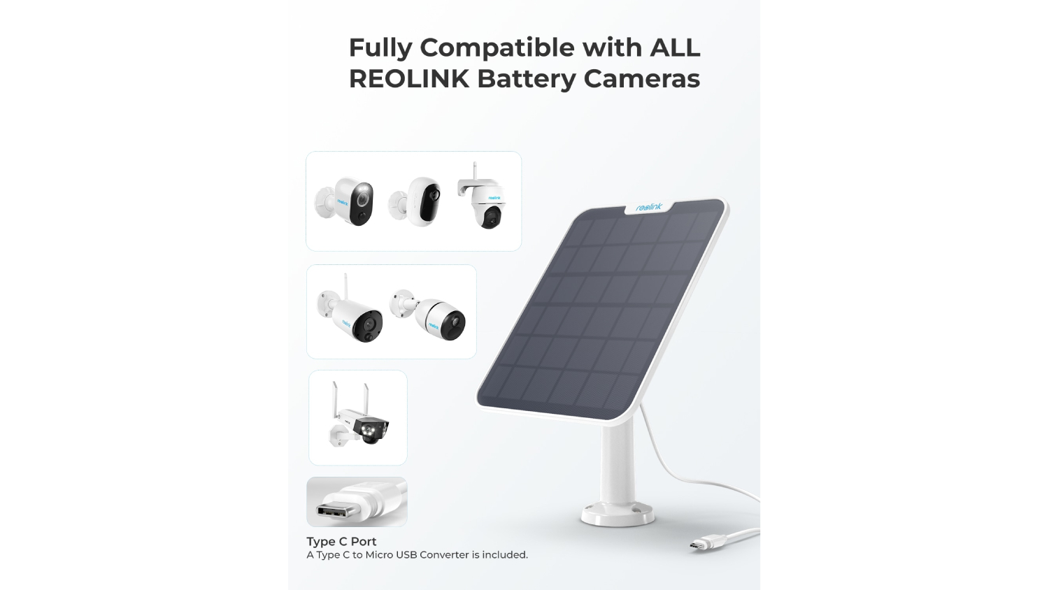 Keep your Reolink wireless battery cameras powered up the eco-friendly way with the Reolink Solar Panel for Home Security Cameras 6W! This panel provides continuous power and comes with an easy-to-adjust outdoor mount and a long 4-metre cable for simple setup. Plus, it is compatible with Reolink 6W Type-C battery cameras, so you can enjoy non-stop security.