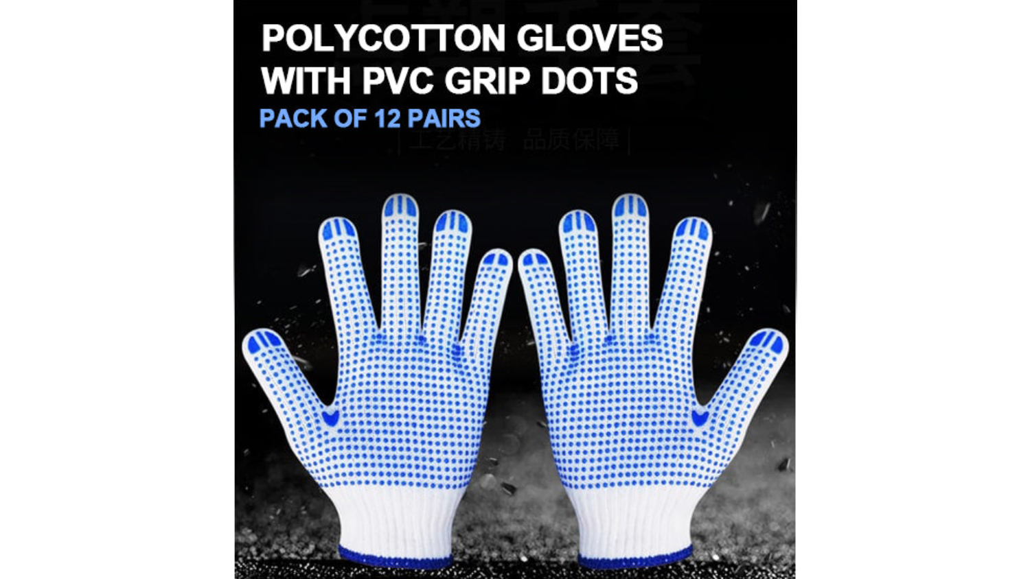The TSB Living Polycotton Gloves with PVC Grip Dots (12pcs) are designed to keep your hands protected and comfortable. With their breathable polycotton material and non-slip PVC grip dots, these gloves are ideal for a wide range of tasks.