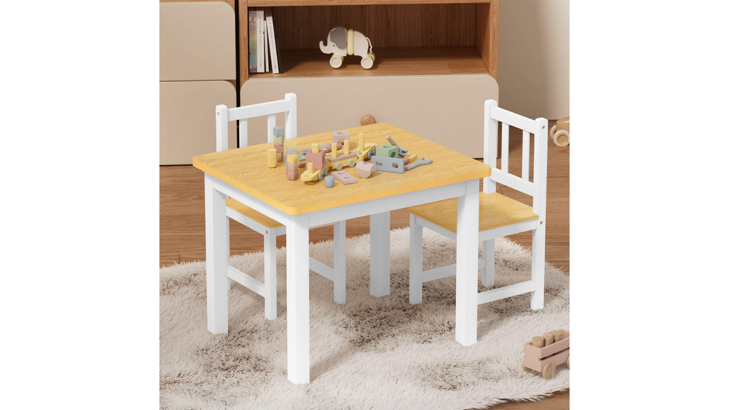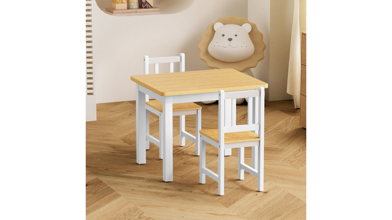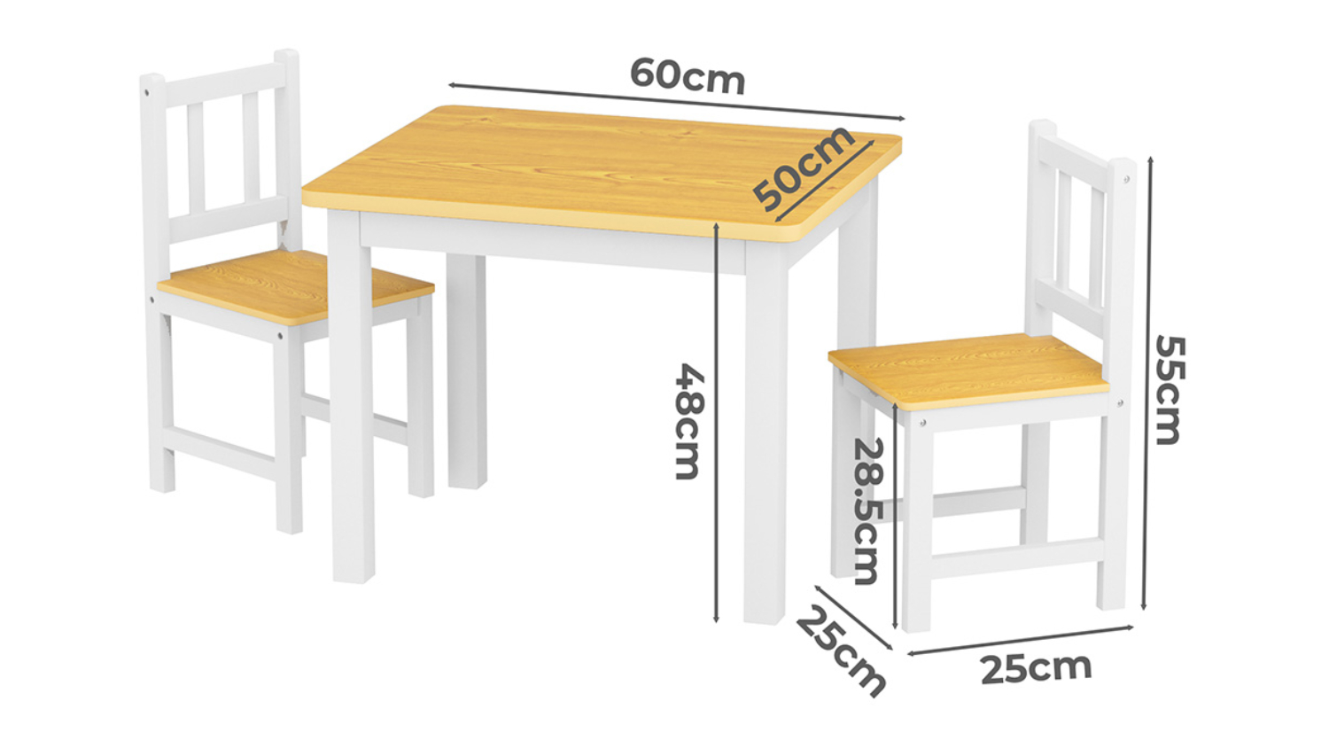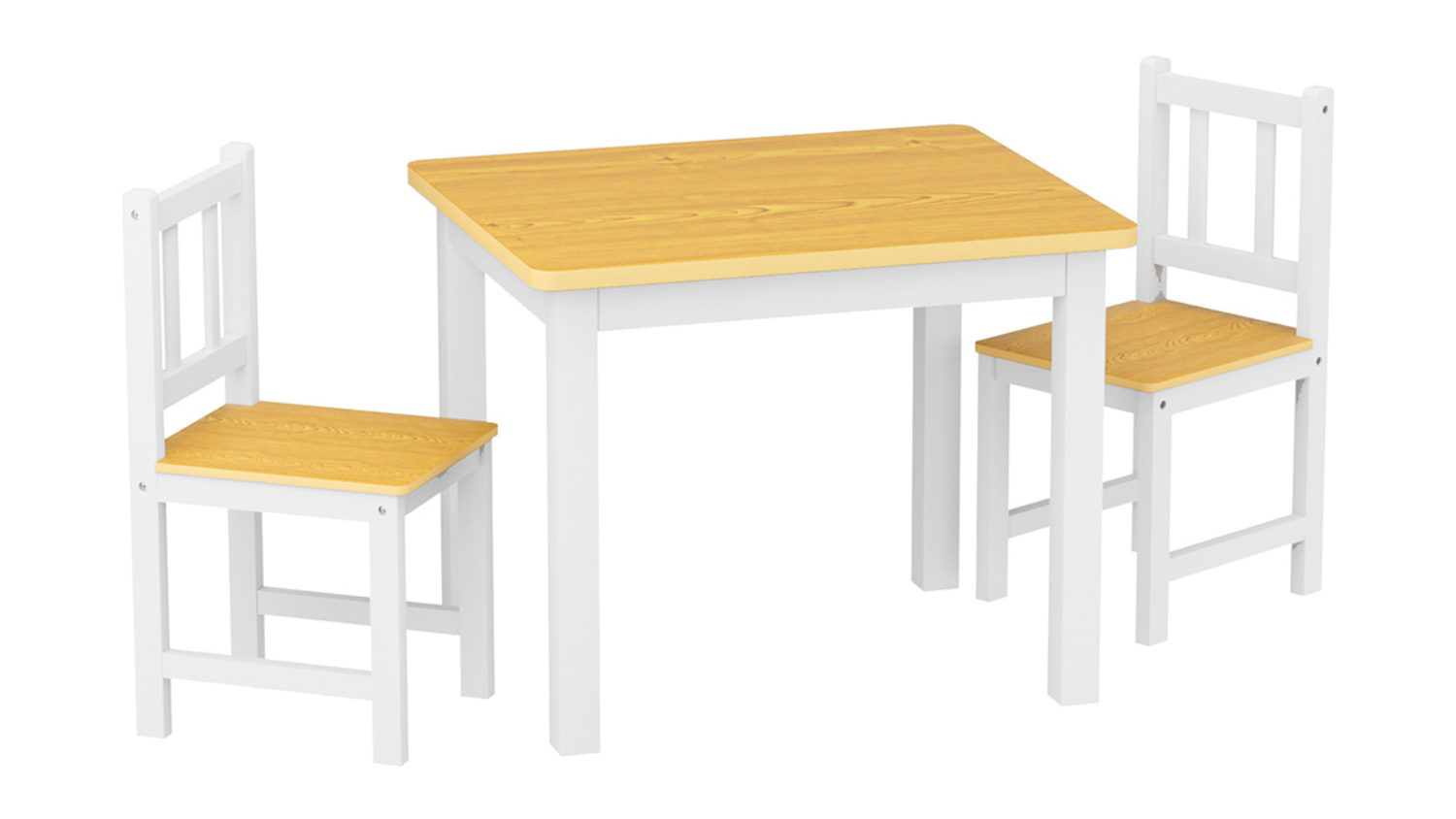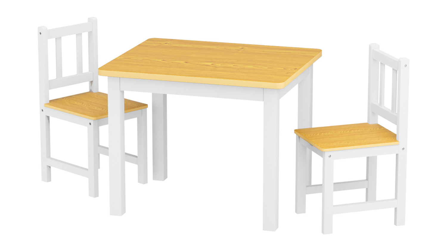 Let your kids have fun expressing their creativity, studying, or even enjoying their afternoon snacks on this 3-Piece Bopeep Kids Table and Chair Set. Made from durable pine wood and MDF, this furniture set includes a spacious kids’ table and two matching chairs. It also highlights a non-toxic finish, rounded corners, and a smooth surface for added peace of mind. Plus, this unit’s space-saving design makes it a great addition to any kids’ playroom, bedroom, nursery, or even in daycare centres.