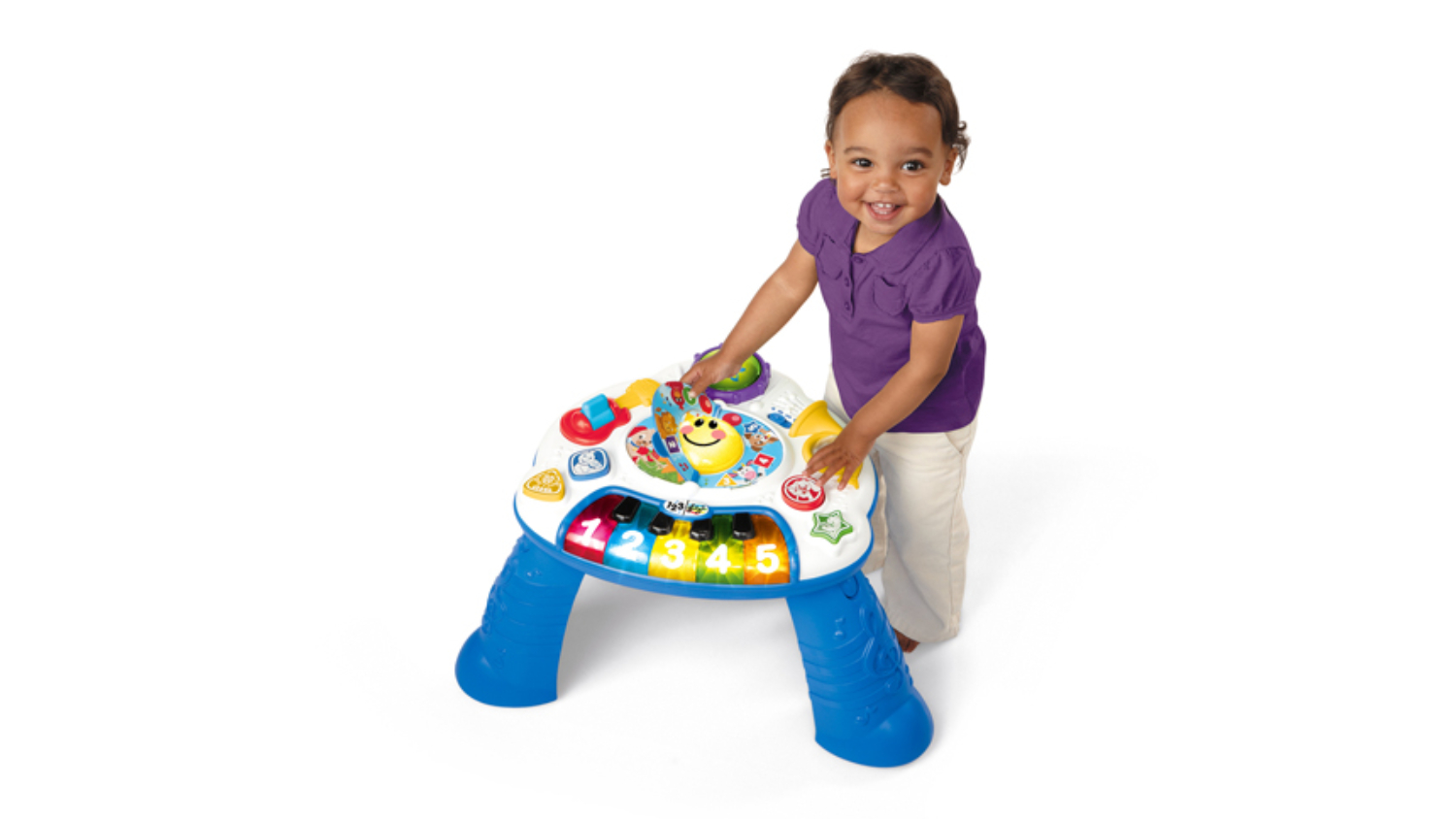 Tune into fun with the Baby Einstein "Discovering Music" Baby Activity Table. This musical marvel lets your baby tap keys, strum guitars, and spin horns while exploring colourful notes and numbers. With a music book that activates melodies and lights, your little composer will be ready for an encore performance. Perfect for igniting creativity and musical fun!