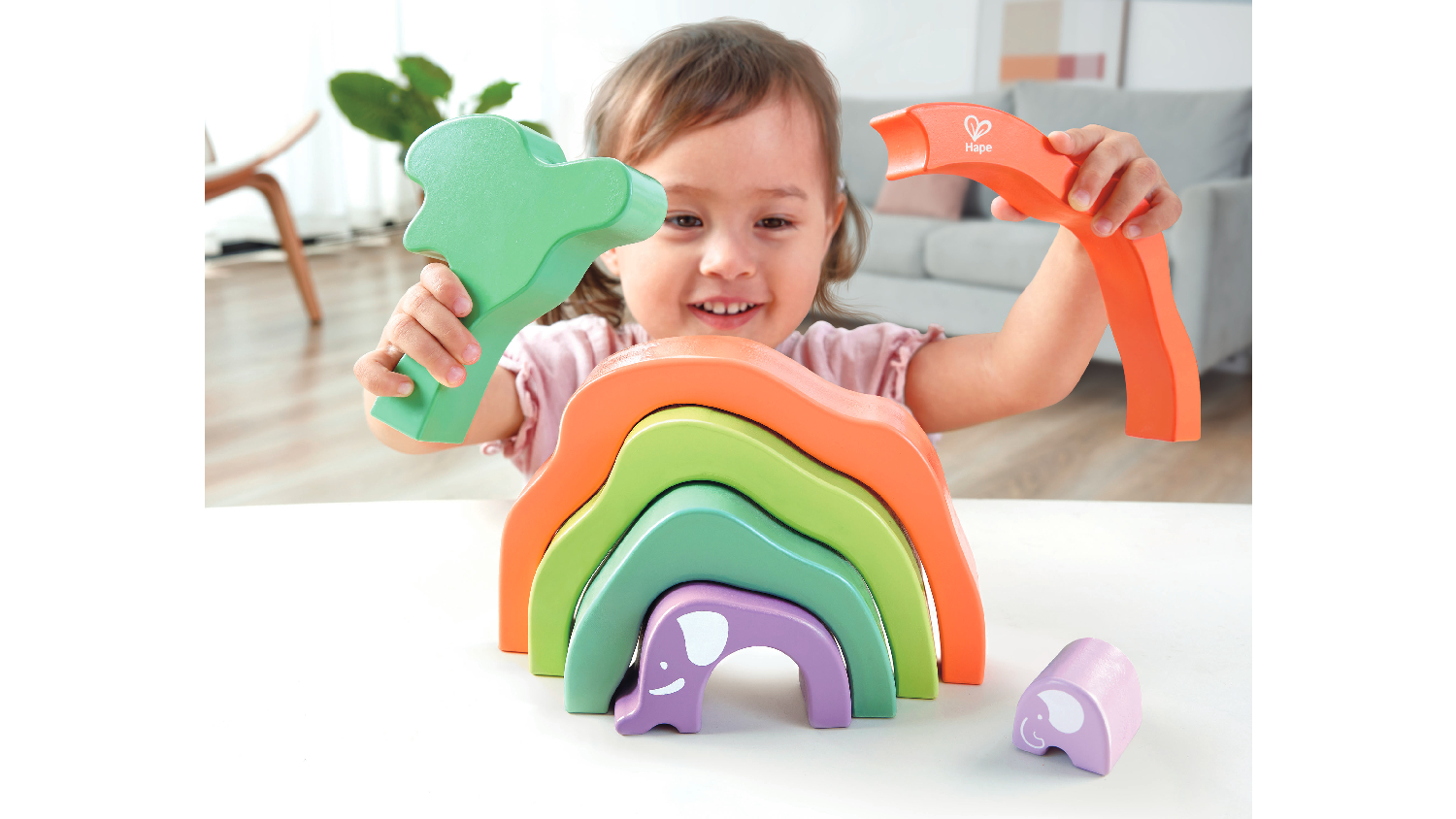 Spark your child's creativity with the Hape Wooden Safari Elephant Stacking Blocks. This traditional wooden toy features six colourful pieces, which children can stack up to create a safari elephant. And when playtime is over, cleaning up is a breeze — just store the blocks away!