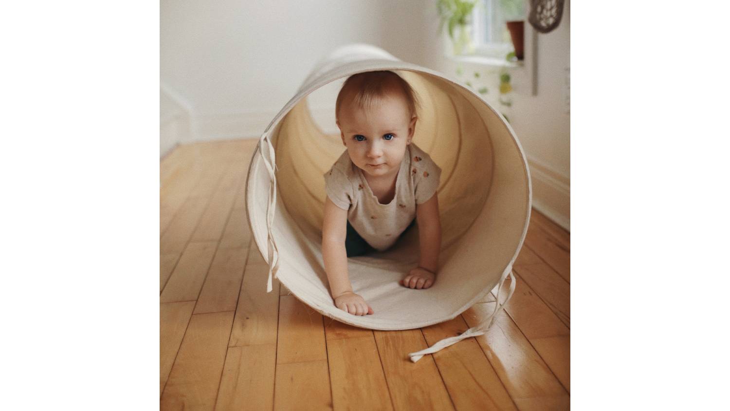 Encourage active playtime with the Kinderfeets Pikler Foldable Play Tunnel. Crafted from 100% natural cotton and wire, this durable tunnel invites children to crawl, hide, and engage in imaginative scenarios. Measuring 175 cm in length and 46 cm in diameter, it provides comfort and fun for endless adventures.