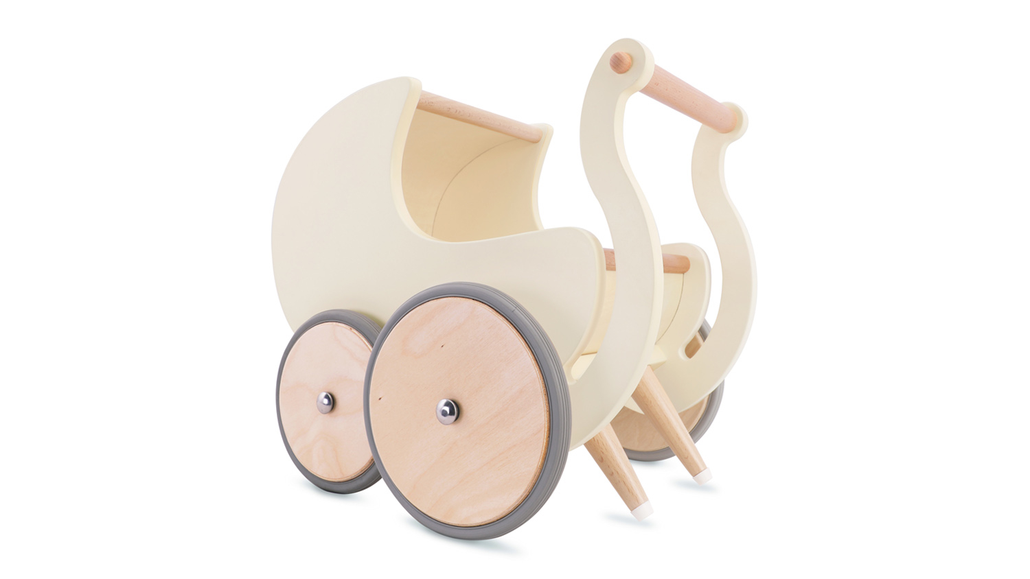 Learning to walk just got a whole lot cuter! The Kinderfeets Wooden Petit Doll Pram is a 2-in-1 baby walker and doll pram that turns every step into an adventure. Handcrafted from sustainable birch plywood and solid beech with non-toxic finishes, it’s safe, stylish, and perfect for little explorers. Plus, the retro-inspired wheels with rubber trim allow your child to manoeuvre easily. It fits dolls and cuddly friends up to 30cm and arrives fully assembled—ready for playtime magic!