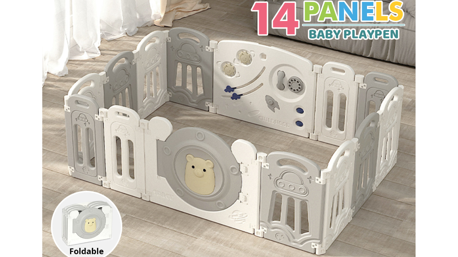 Create a safe and fun space for your little one with the TSB Living Baby Playpen. This high-quality playpen features a safety door lock, narrow gaps, and enhanced safety joints. The colourful panels create a fun and inviting environment, while the foldable design makes it easy to store and transport.