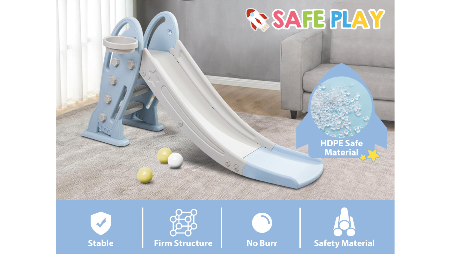The TSB Living Baby Slide is the perfect way for your little one to have fun! With its wider pre-slide area, smart design, and speed-up, slow-down, and stop zones, this slide will surely provide hours of entertainment for your child.