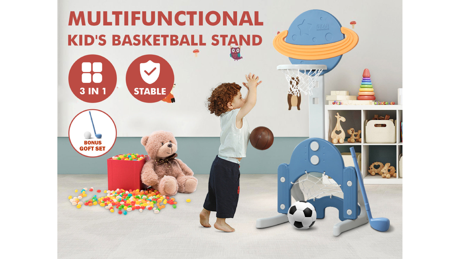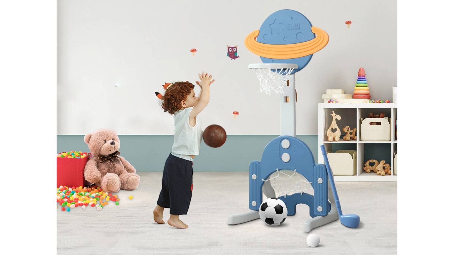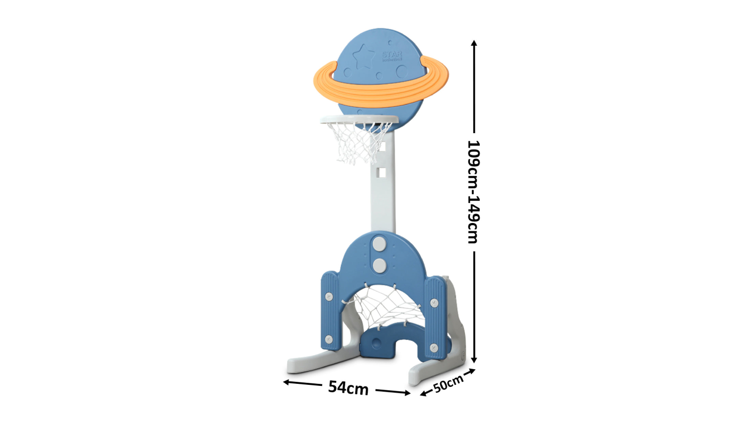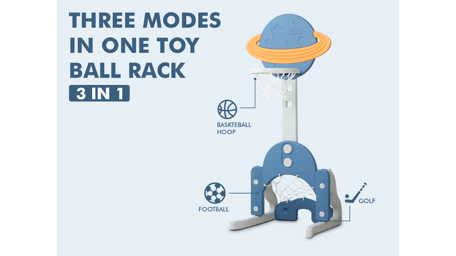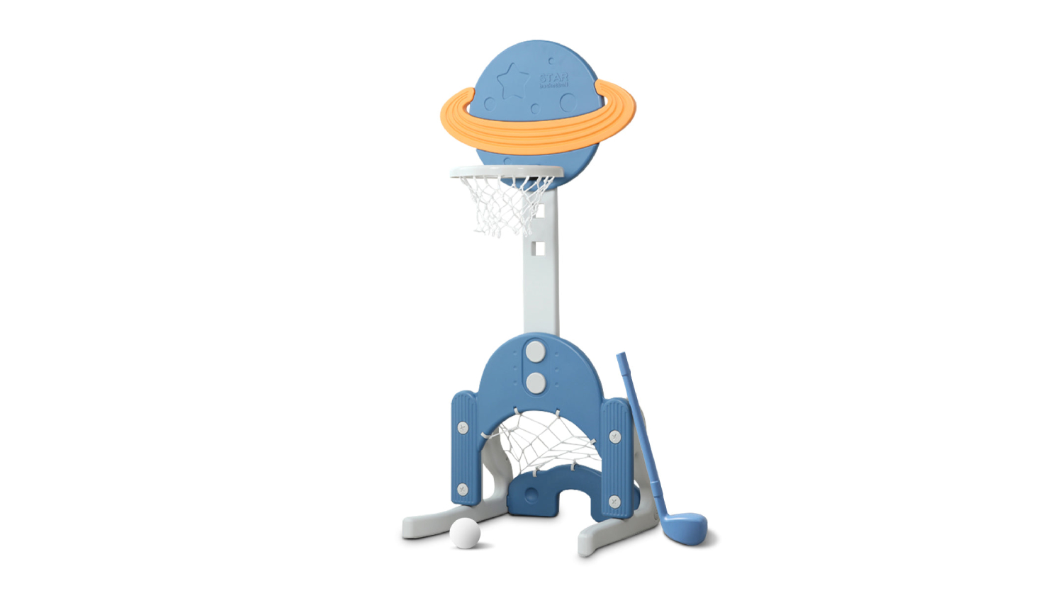 Spark your child's imagination and love for sports with TSB Living Children's 3-in-1 Sports Station! This versatile station offers a basketball hoop, a soccer goal, and a golf set, all in one convenient package. Perfect for toddlers and preschoolers, it helps develop coordination, balance, and hand-eye coordination. With adjustable heights and easy assembly, it's a great addition to any backyard or playroom.