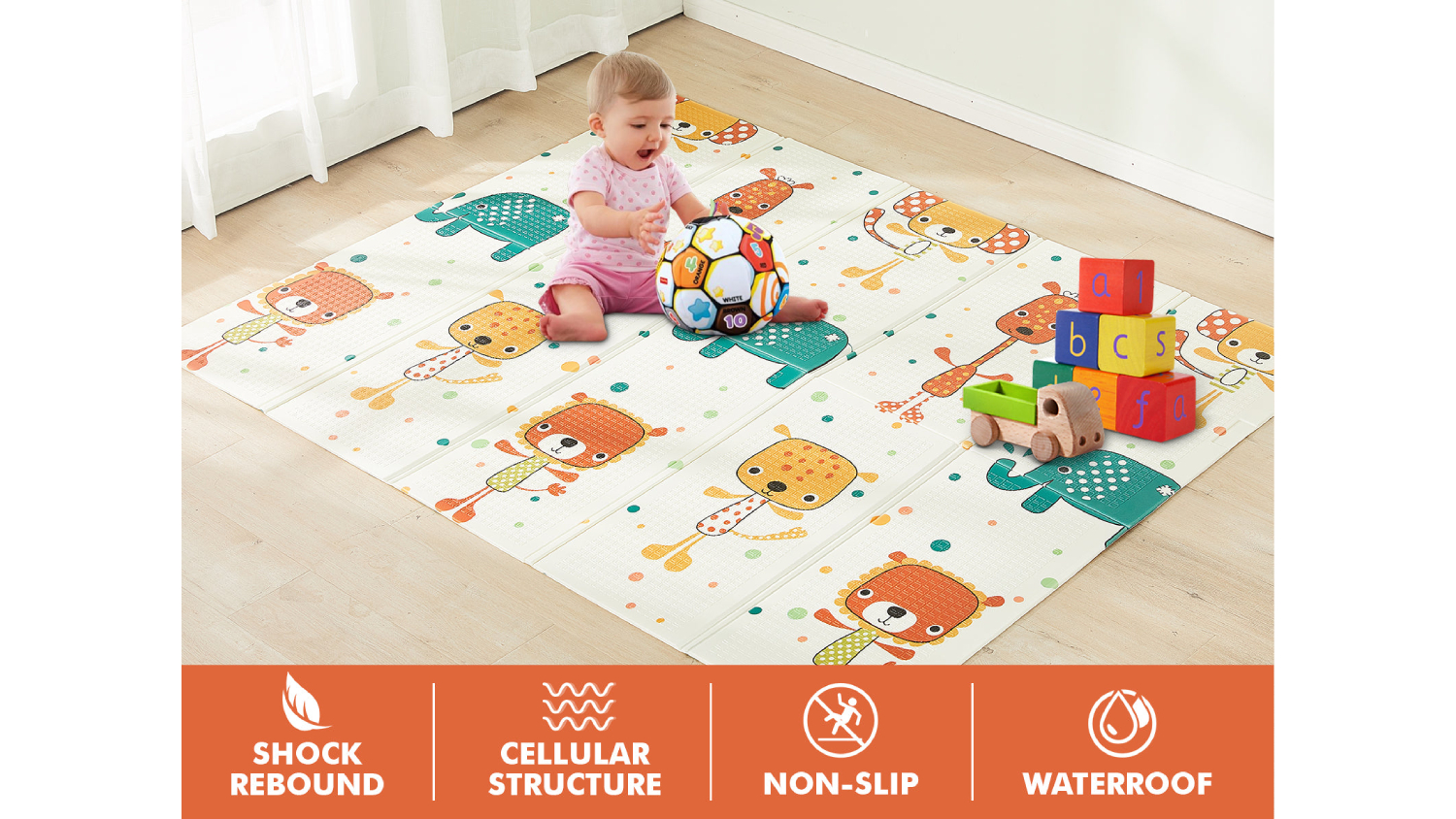 Elevate playtime for your baby with the TSB Living Waterproof Folding Baby Play Mat. Made from high-density XPE material, this eco-conscious mat ensures maximum comfort and durability. Both sides of the play mat also feature pictures that help children learn how to recognise and write.