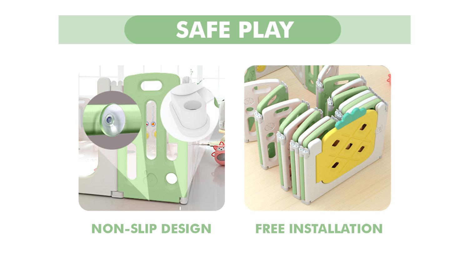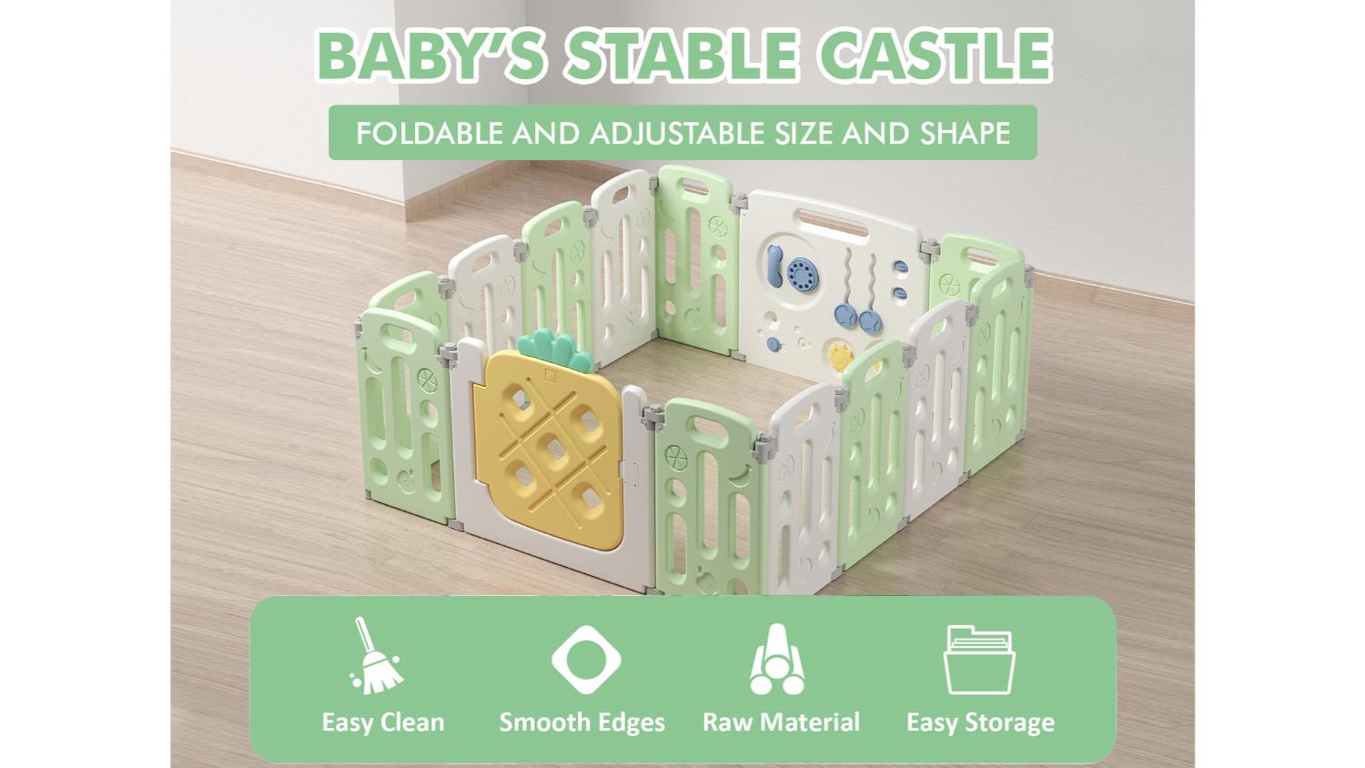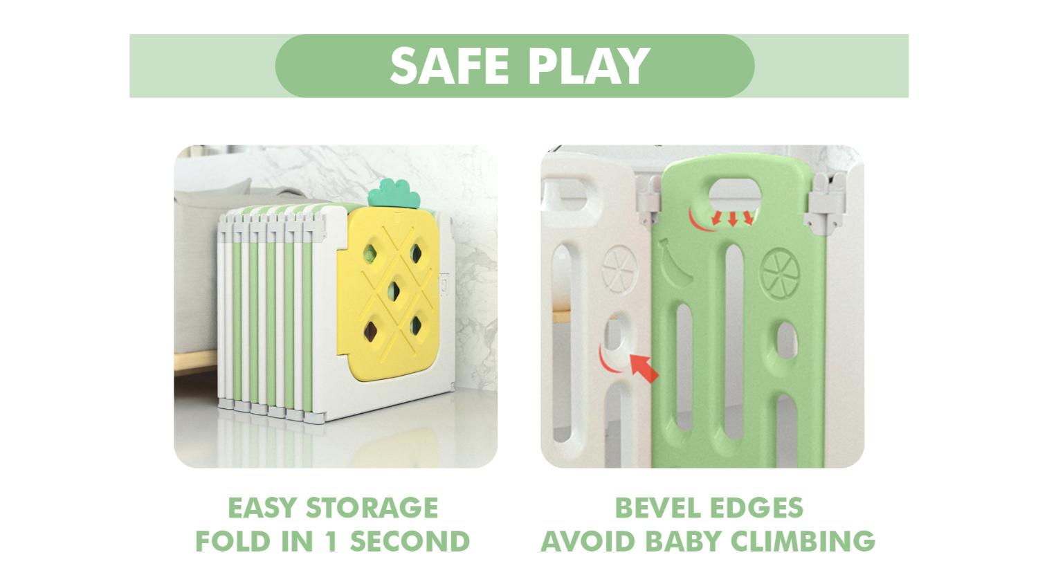 *Note: The play mat is not included. There are optional extension panels sold separately to extend the baby playpen.