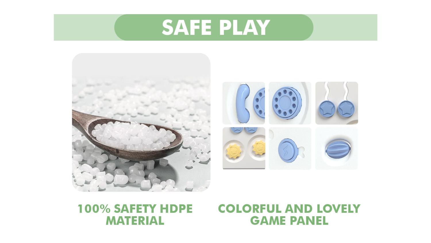 Say hello to endless giggles and playtime magic with the TSB Living Baby Playpen! Crafted with 14 non-toxic plastic panels and narrow gaps, this unit offers enhanced safety and worry-free fun. Plus, its vibrant, multi-coloured panels create a cheerful ambience, making it the perfect playground for your little adventurer.