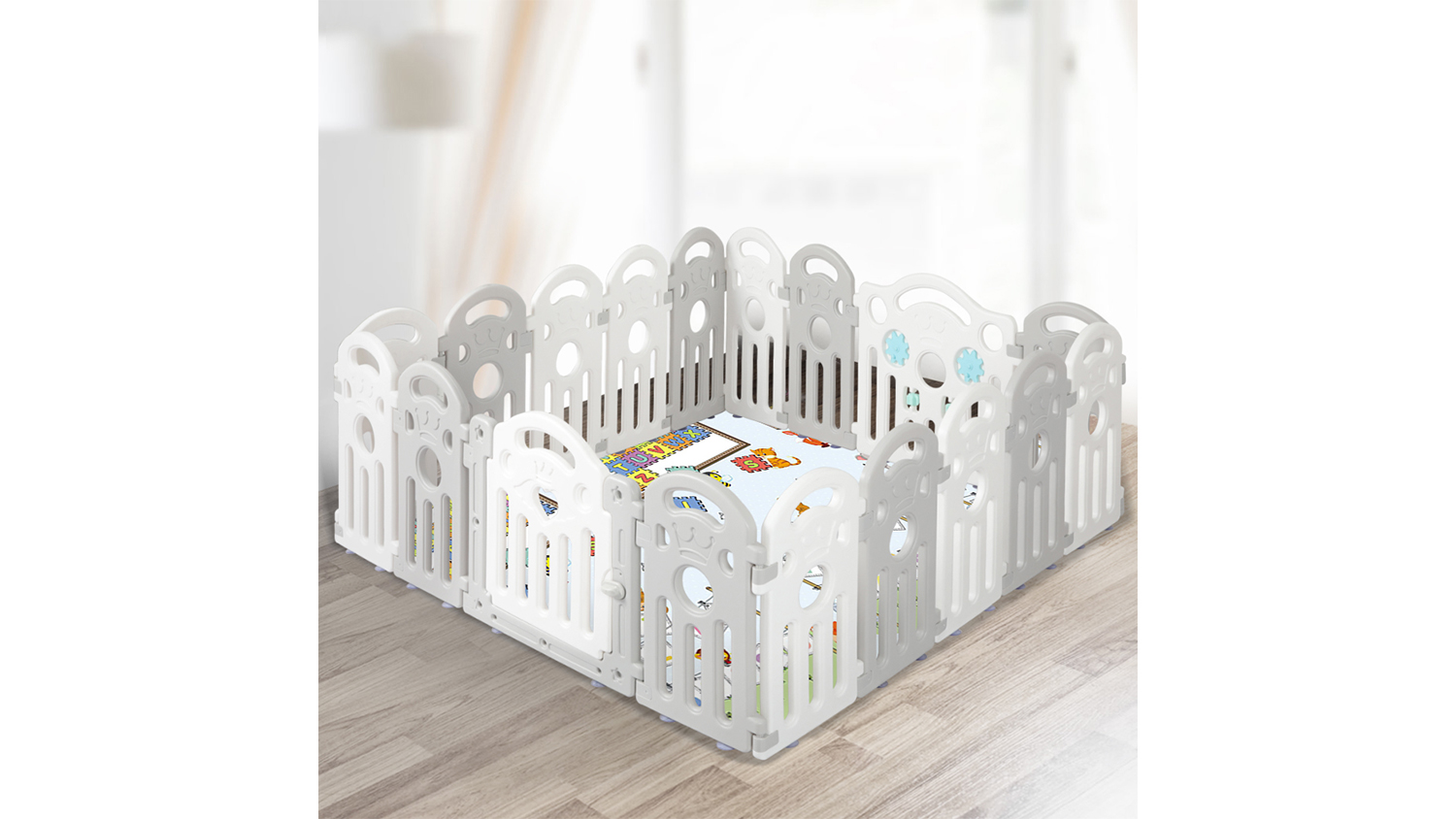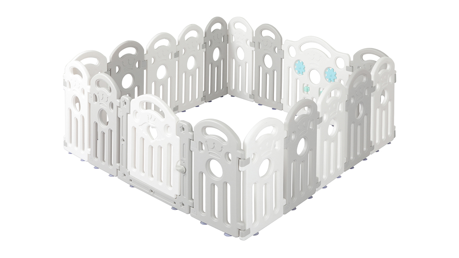 Build the perfect play zone with the Bopeep Plastic Baby Safety Playpen. Perfectly combining safety and versatility, this 18-piece playpen lets you create a custom-shaped safe zone that fits any layout. It is also crafted with your tiny tot in mind, featuring non-toxic materials, rounded edges, and a safety external lock. Plus, this unit has a 60cm height for easy monitoring of your baby.