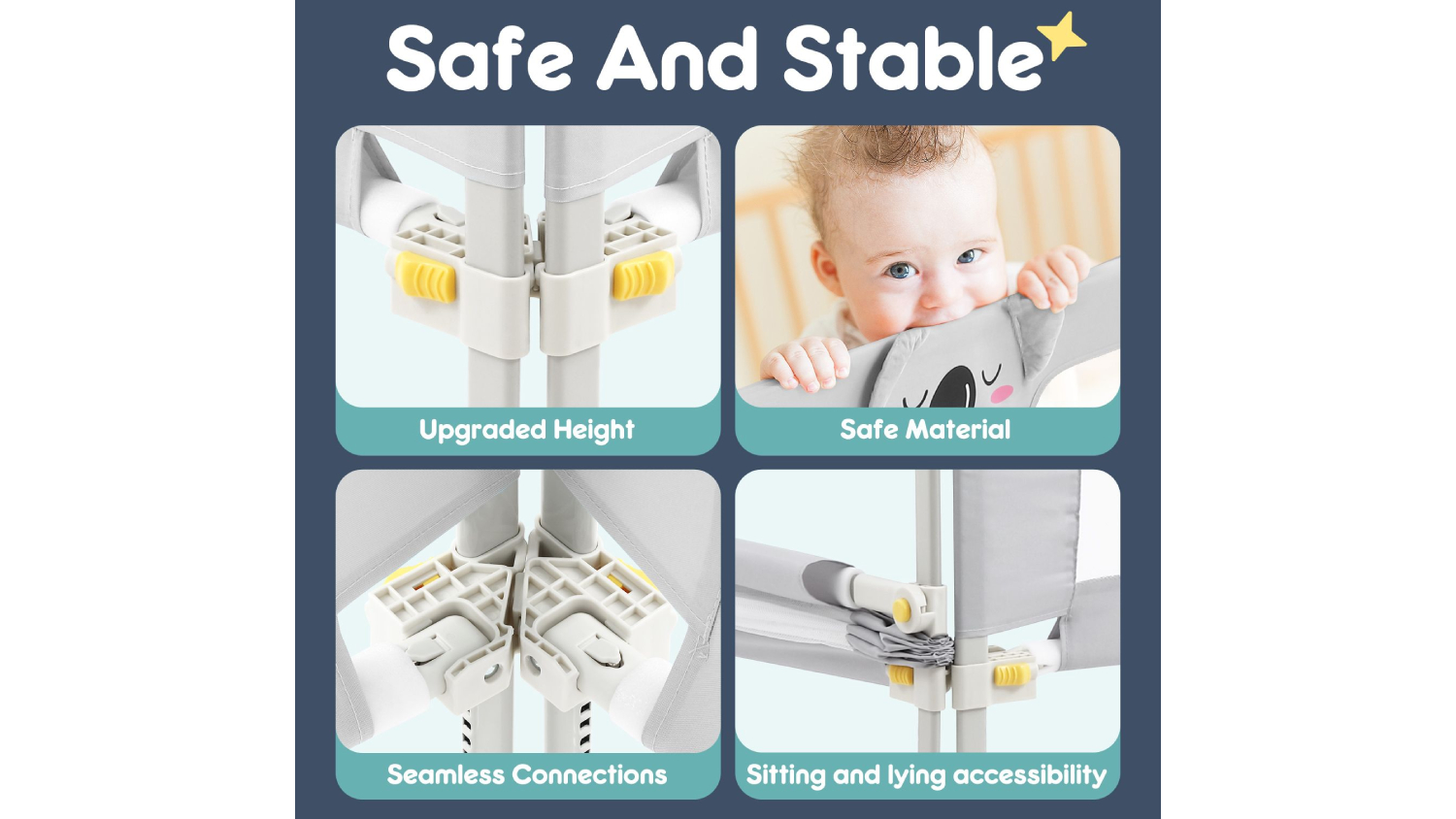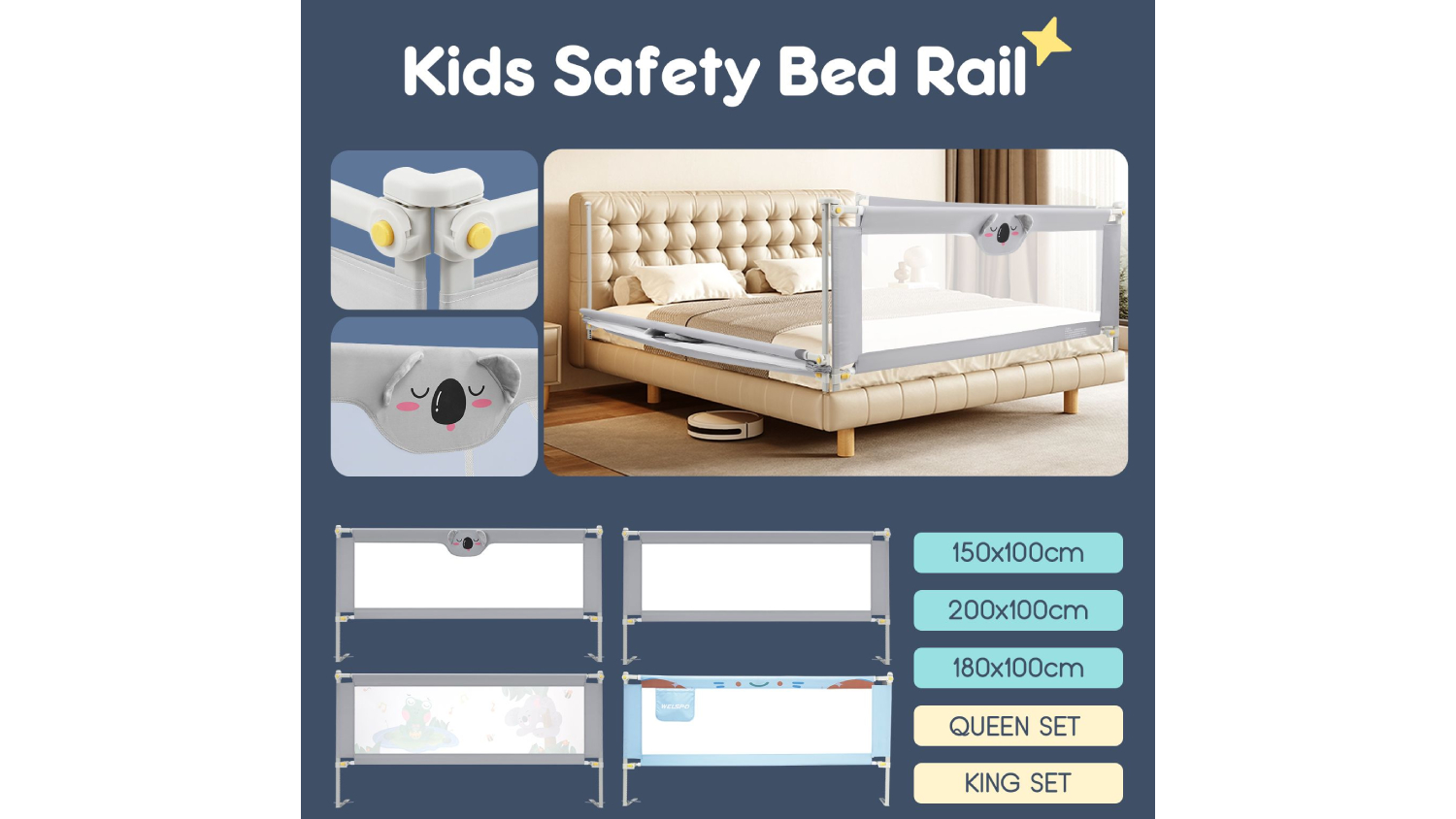 The Kidbot Toddler Bed Guard Rail 3pcs is your go‑to solution for creating a secure sleep space for toddlers. This 3‑piece, extra‑tall rail set is built with tough steel construction and covered in breathable, long‑lasting mesh that’s gentle on little hands. Designed for both safety and convenience, the sides adjust in height and lift easily so your child can climb in and out independently. Versatile enough to fit most bed frames, it’s a reliable safety essential for peace of mind all night long.