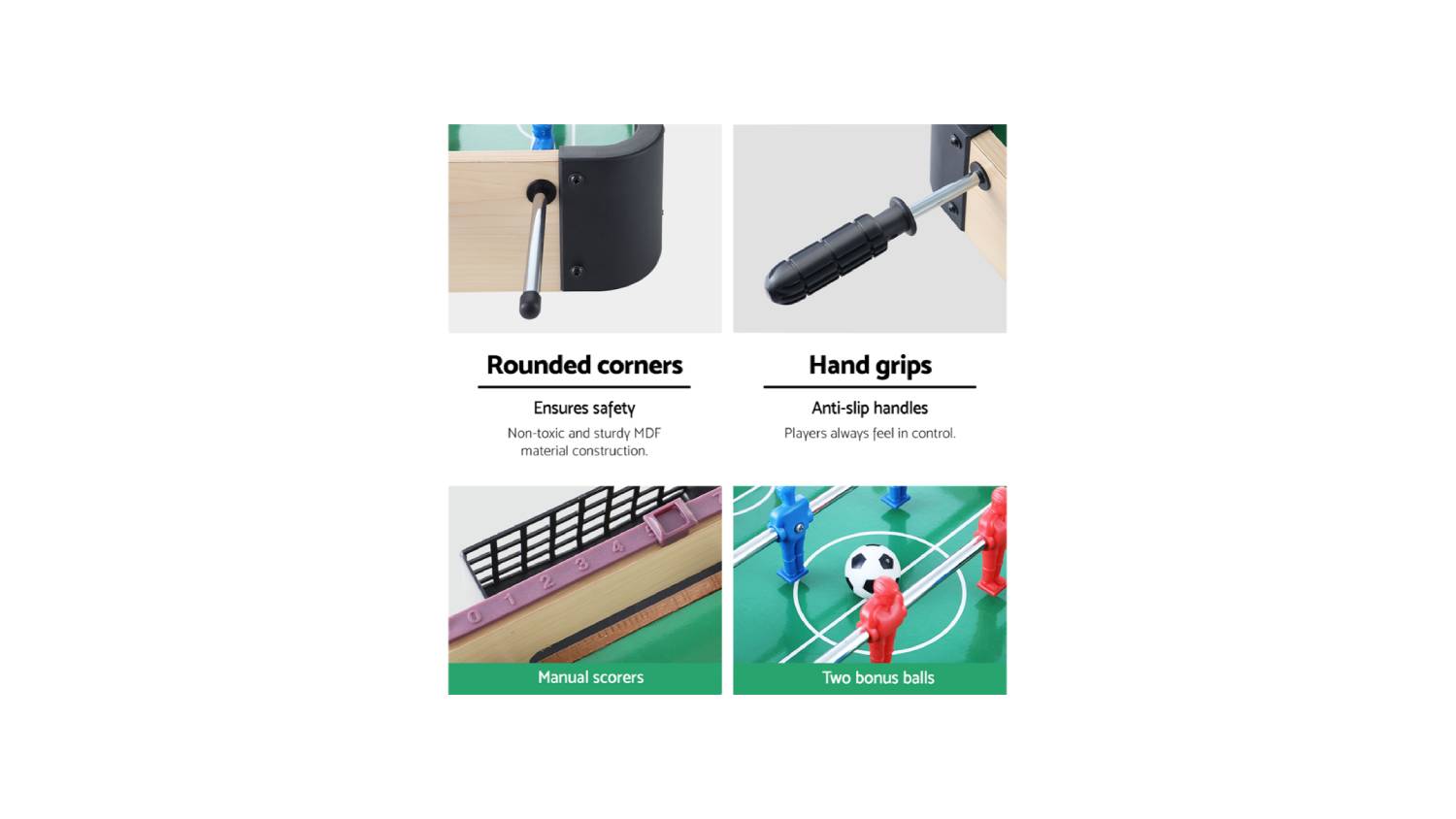 Are you a die-hard football fan looking for a way to bring the game into your daily life? The Artiss Mini Foosball Table is your ticket to non-stop entertainment and friendly competition. Perfectly designed for both children and adults, this mini foosball table offers a thrilling and immersive gameplay experience. Challenge your friends to exciting matches, showcase your skills, and revel in the joy of victory. Crafted with precision and attention to detail, the Artiss Mini Foosball Table features smooth rods, ergonomic handles, and sturdy construction, ensuring a seamless and enjoyable playing experience.
