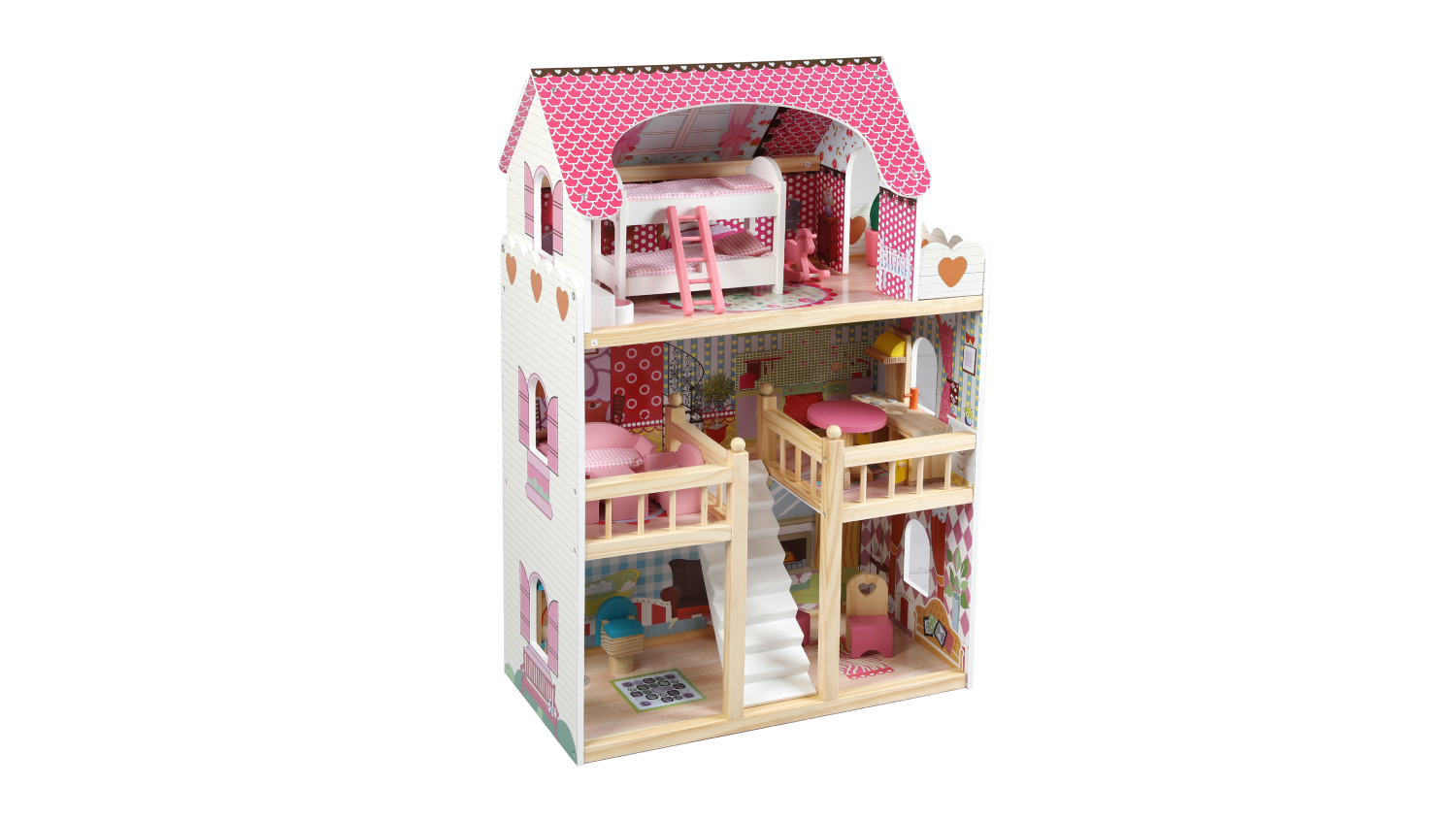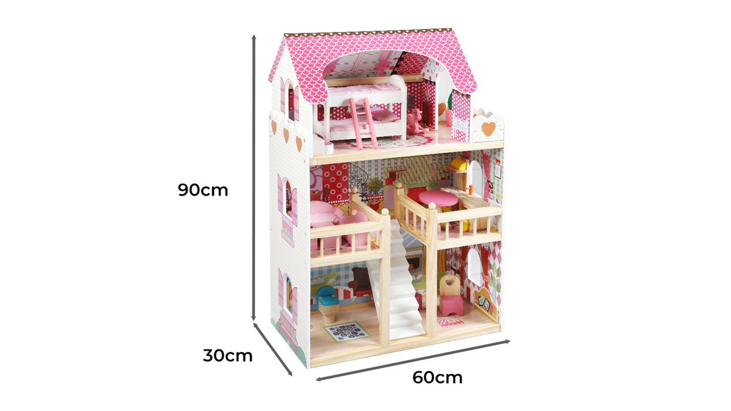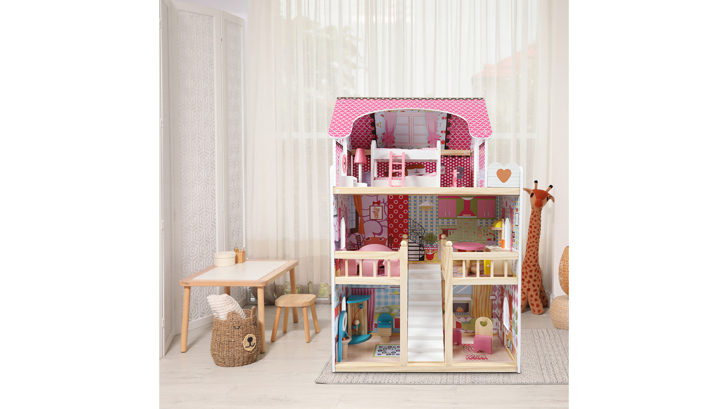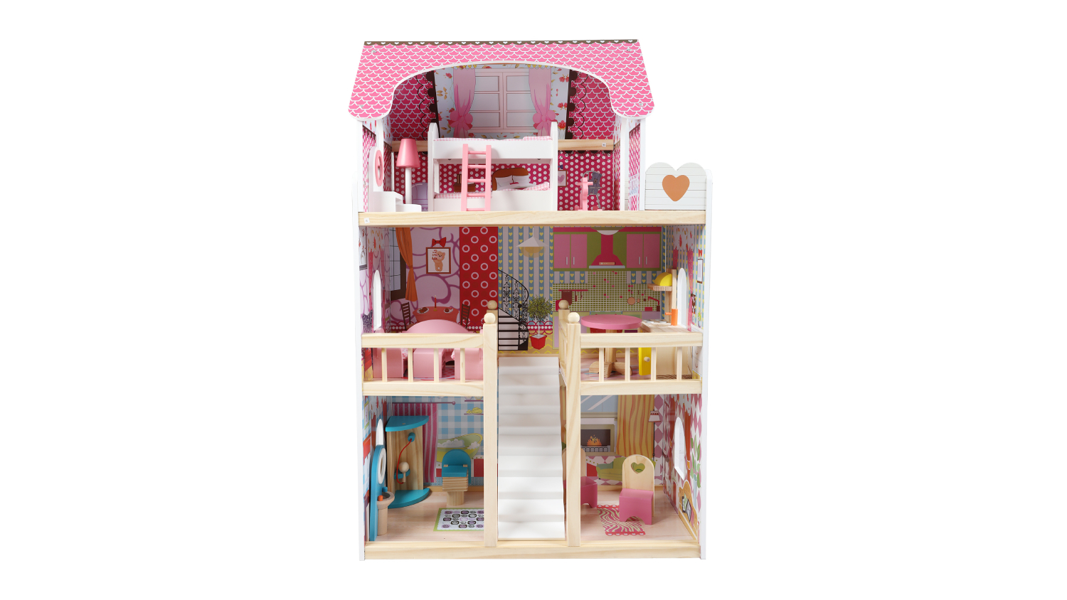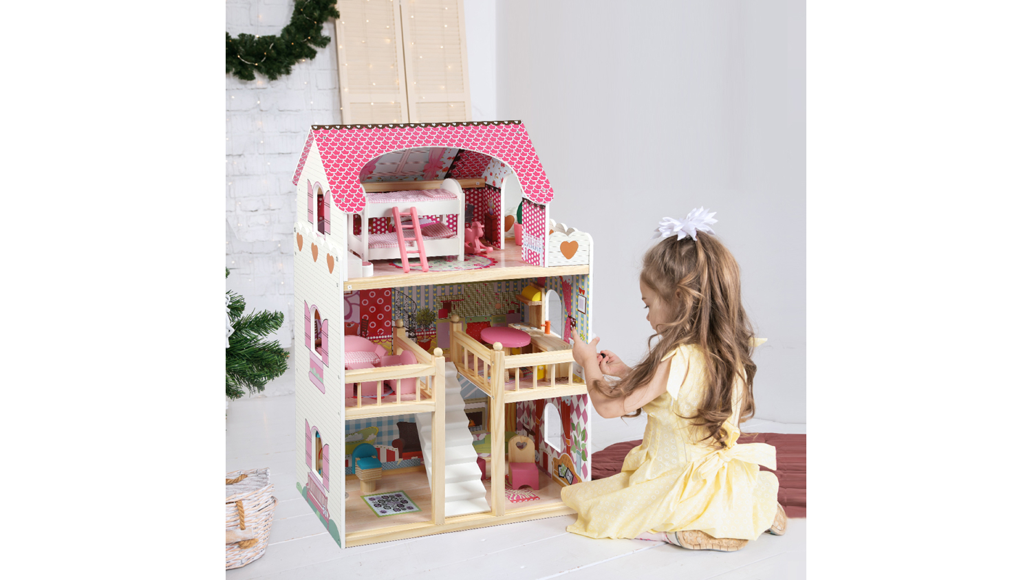 Delight your child with the Bopeep Painted Wooden Dollhouse! This charming 3-floor dollhouse sparks creativity, allowing kids to set up furniture, simulate family life, and nurture their imagination. Complete with a pet dog and 17 pieces of durable wooden furniture, it’s perfect for endless storytelling. Safe, smooth surfaces and water-based paint ensure hours of worry-free fun.