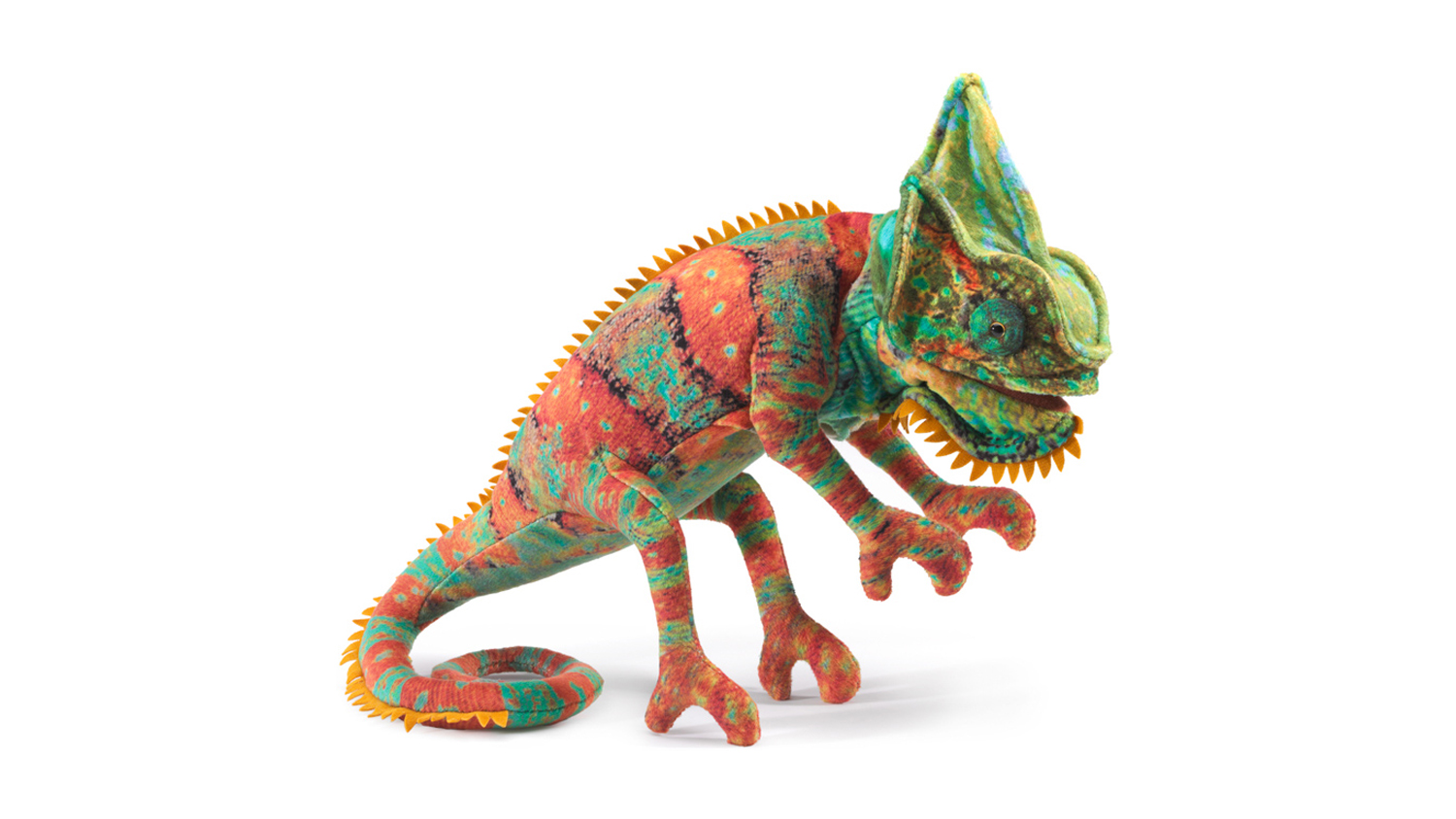 Let your kids have fun as they make their own puppet show with this Folkmanis Small Chameleon Puppet! A perfect companion for young performers or at-home storytellers, this interactive stage puppet breathes life into your favourite tales and adventures. It showcases a vibrant and colourful chameleon design that’s always ready to serve a spectacular show. It also has a movable mouth so that young puppeteers can create fun and engaging dialogues.