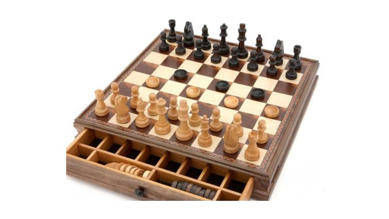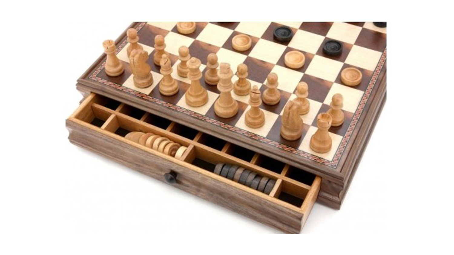 Dal Rossi 38cm Chess & Checkers Set - Walnut
