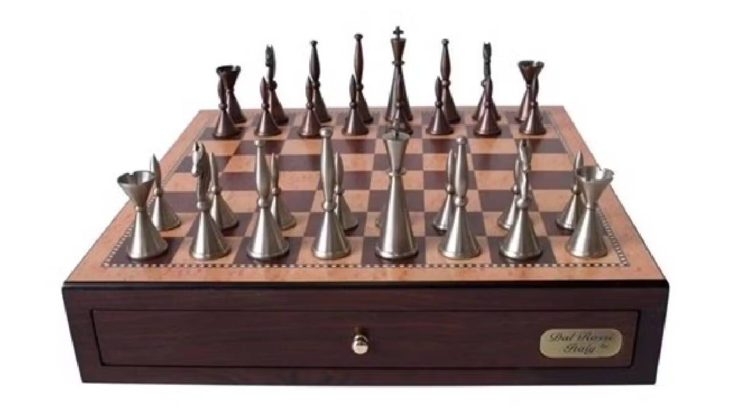 Play in style with the Dal Rossi 18" Staunton Metal Chess Set. With its stunning metal design, this set exudes sophistication and class. Whether you're a chess enthusiast or a lover of fine craftsmanship, this set will be a cherished addition to your collection and a centrepiece of strategic battles. Master each piece's unique moves to outwit your opponent and win checkmate!