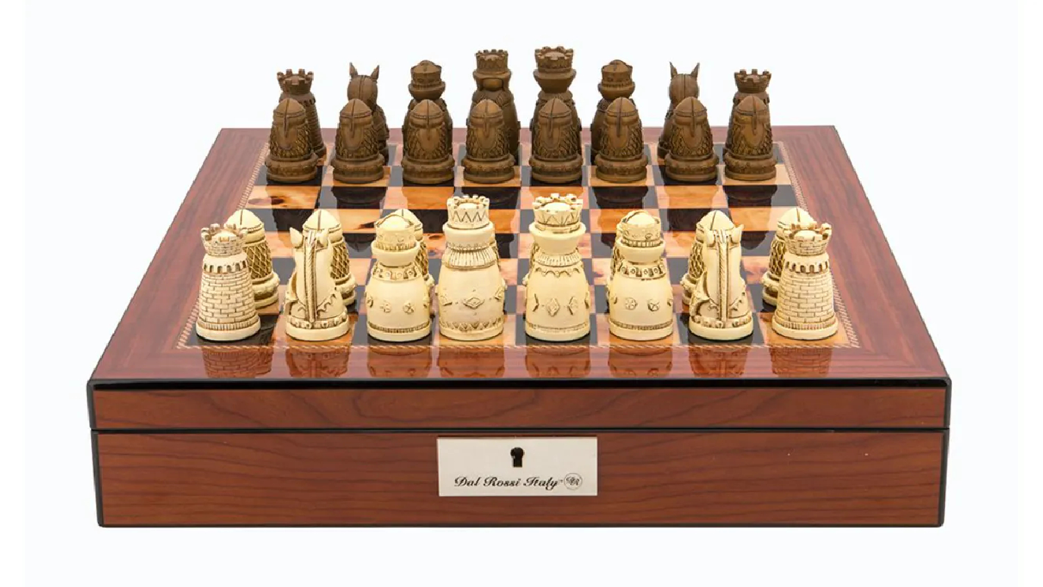 Command your army to victory with the Dal Rossi 16" Chess Set Medieval Resin. This exquisite set captures the essence of medieval times, featuring beautifully crafted resin pieces. Master each piece's unique moves to outwit your opponent and win checkmate!
