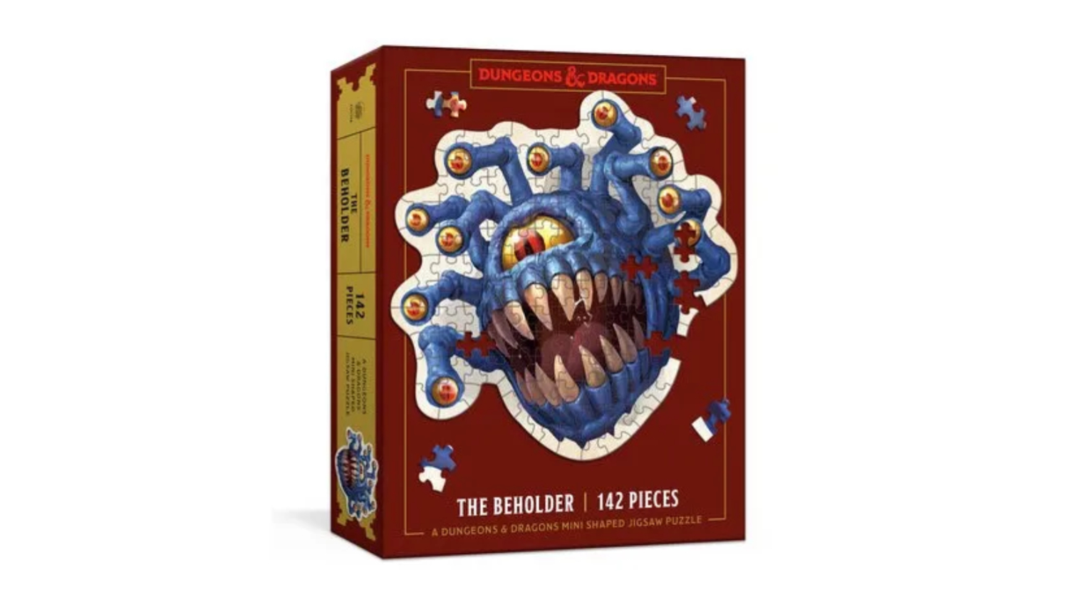 Dive into the world of D&D with the Dungeons & Dragons Licensed Jigsaw Puzzle 142pcs. This officially licensed, 142-piece mini puzzle is shaped like the fearsome Beholder itself, delivering a unique challenge for puzzle lovers and adventurers alike. At just 8" x 8", it’s the perfect addition to your growing bestiary.