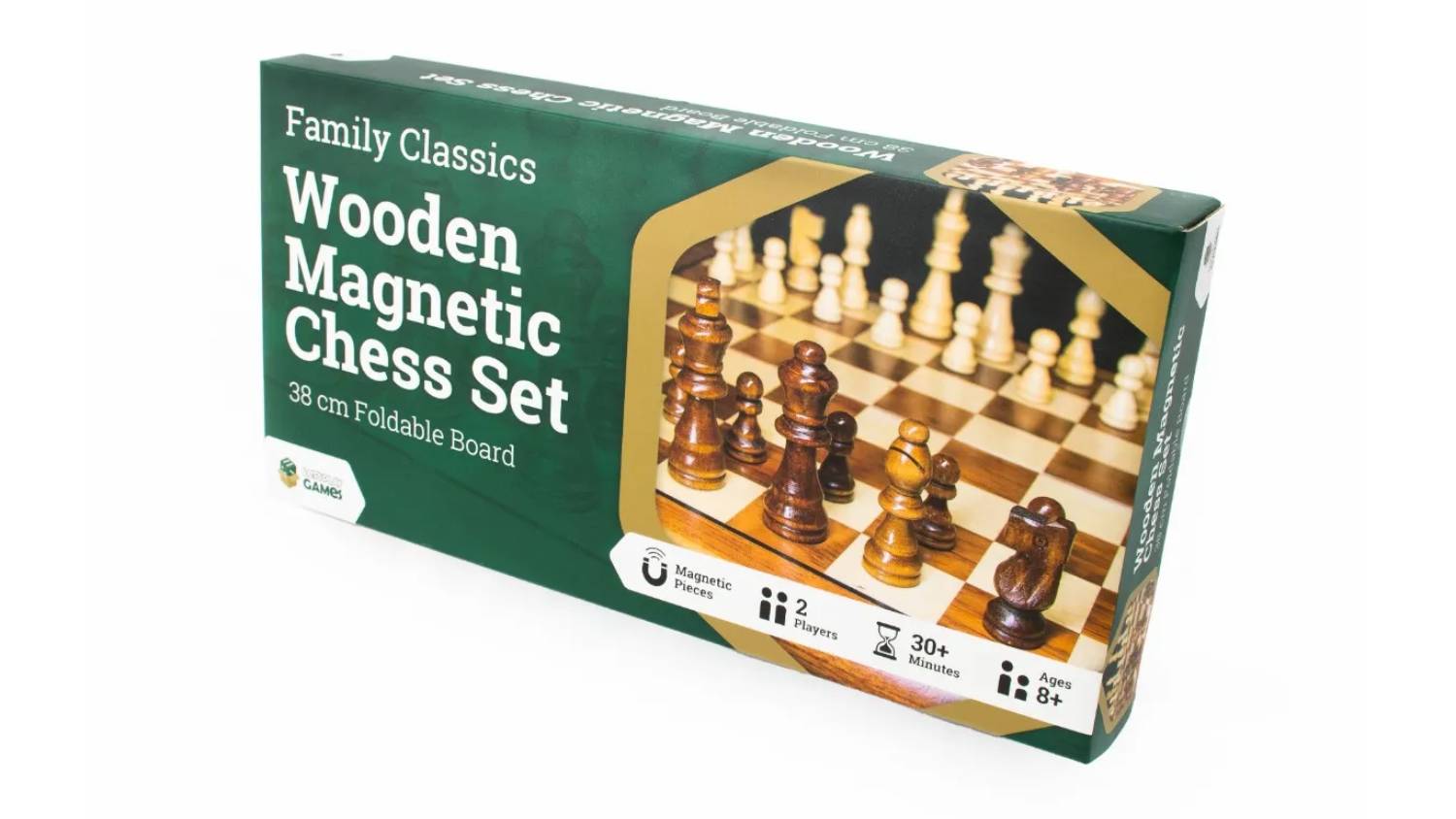 Take your favourite game on the go with the LPG Classics Wooden Travel Chess Set. Perfect for travel or a coffee shop game session, this compact 38cm pack features an inlaid wooden board with a magnetic surface to keep the classic Staunton pieces securely in place. It also includes one foldable board and a complete set of light and dark brown chess pieces.