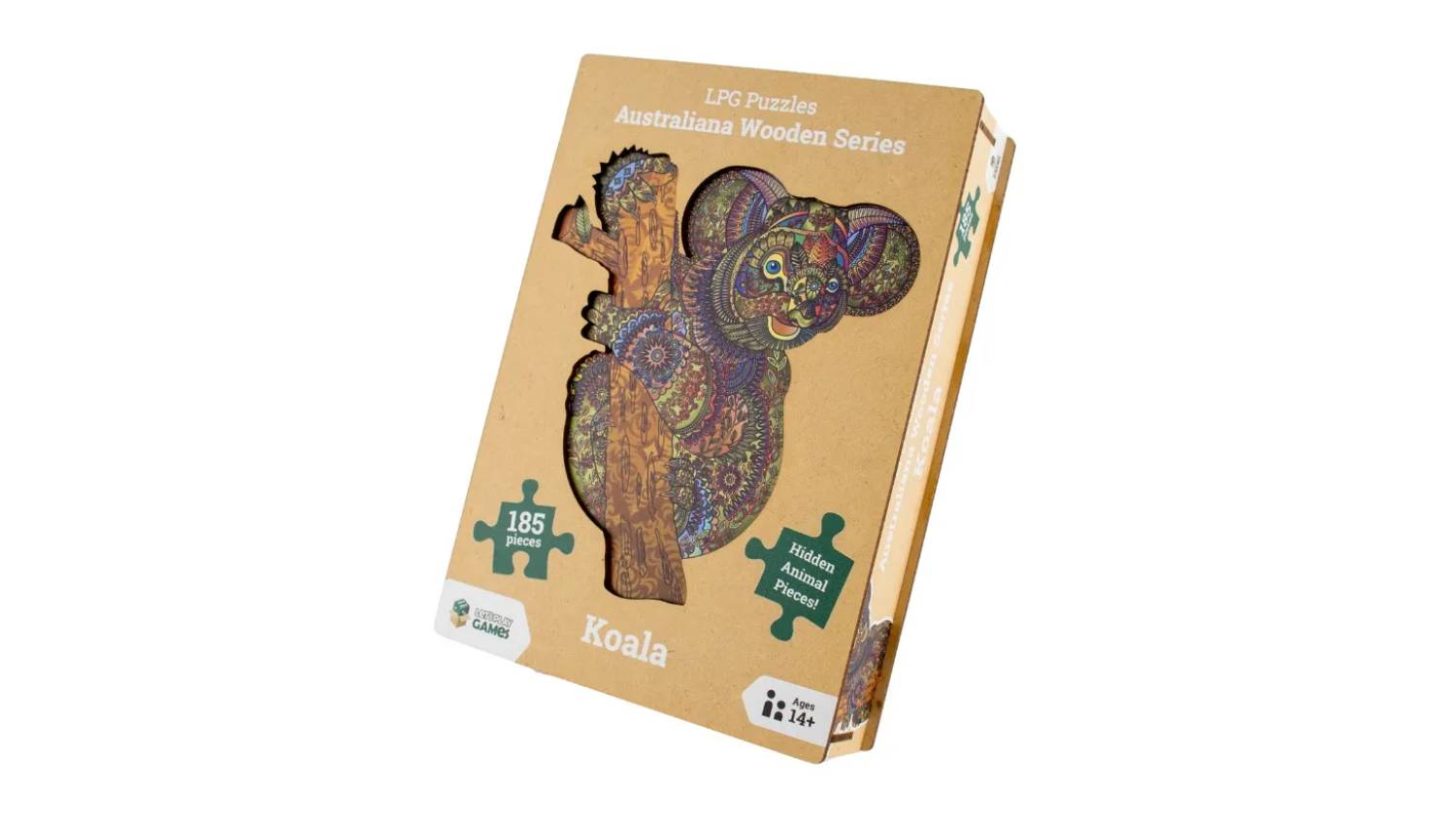 Discover a world of fun with the LPG Oceanian Animals Wooden Puzzle. With 185 irregularly-shaped chunky wooden pieces, this puzzle provides a delightful challenge for kids and adults. It also features a sleepy Koala design and a vibrant colour palette.