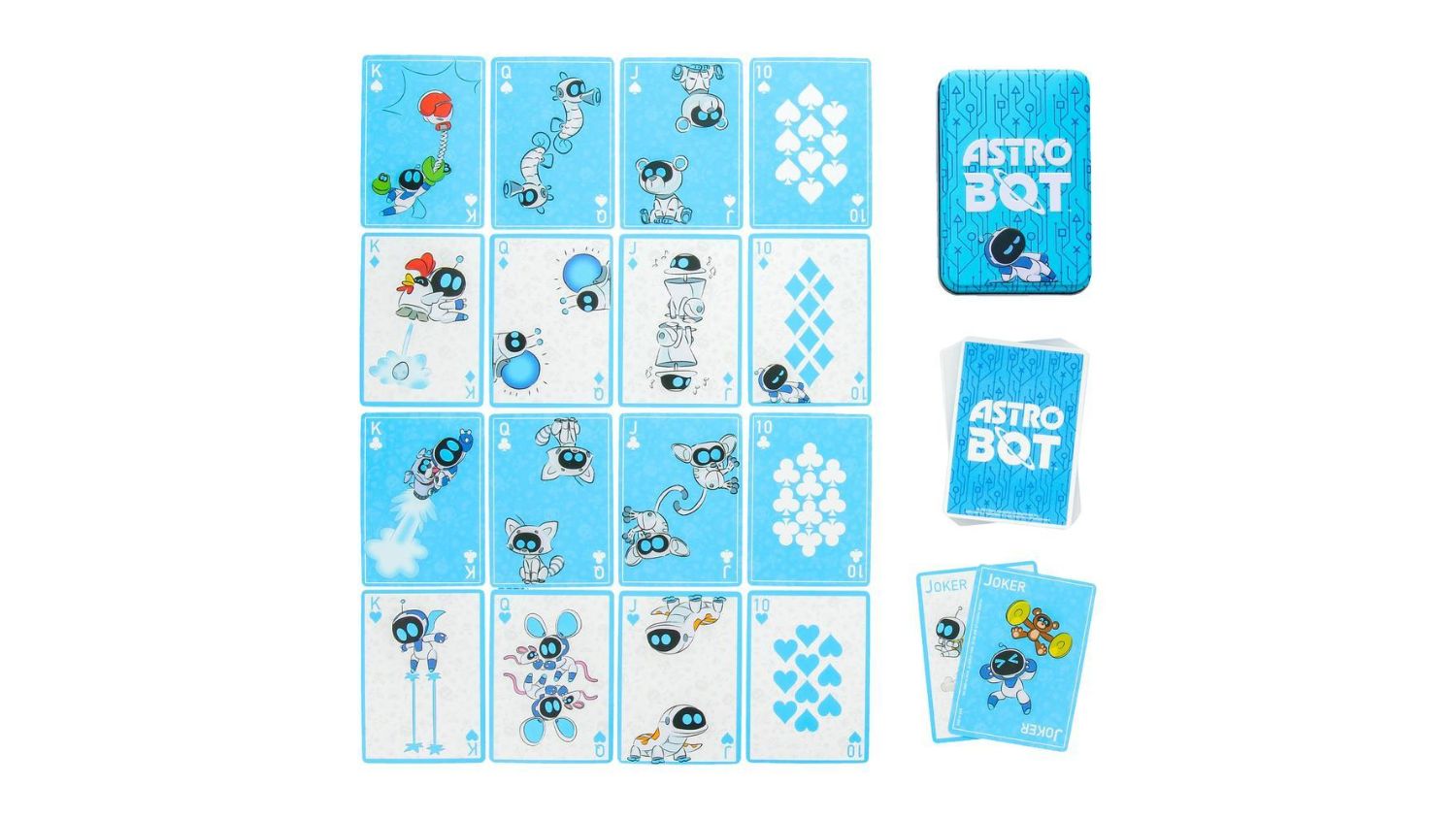 Shuffle up a fun experience with the Paladone Themed Playing Cards featuring Astro Bot. This officially licensed set brings the game universe to life with a standard 52-card deck plus two jokers, featuring Astro Bot in various forms. The cards are neatly housed inside a matching storage tin. This collectible deck is an ideal gift idea for Astro Bot fans and gamers alike.