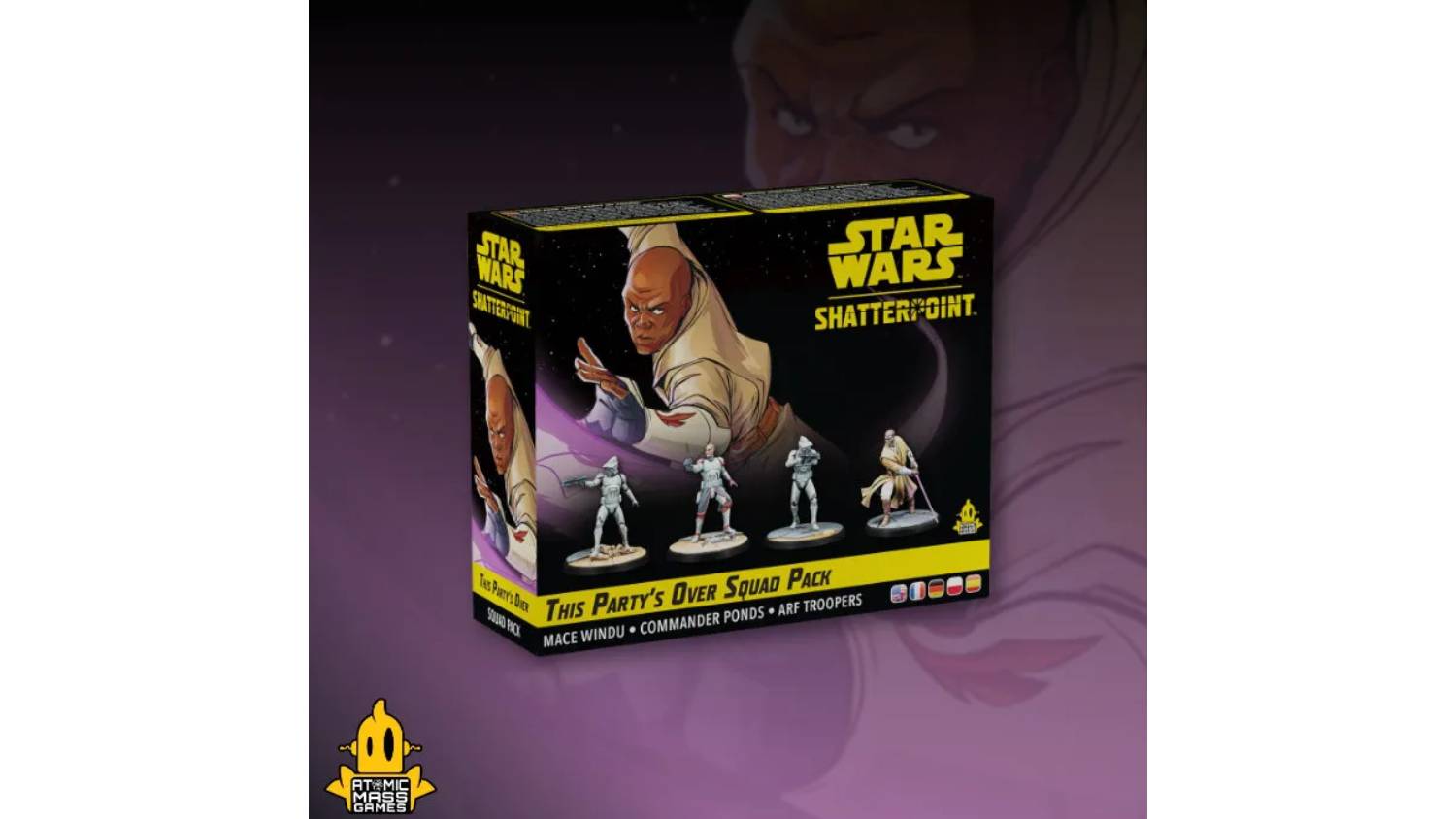No one can stop this party! The Star Wars: Shatterpoint Squad Pack (This Party's Over) adds the legendary Jedi Master Mace Windu to your collection. This powerful squad also includes Clone Commander "Ponds" and two ARF Troopers. With their incredible prowess, they are perfect for use as a dedicated team or as a powerful addition to your custom army. All the stat, order, and stance cards are included, so you're ready to play right away.