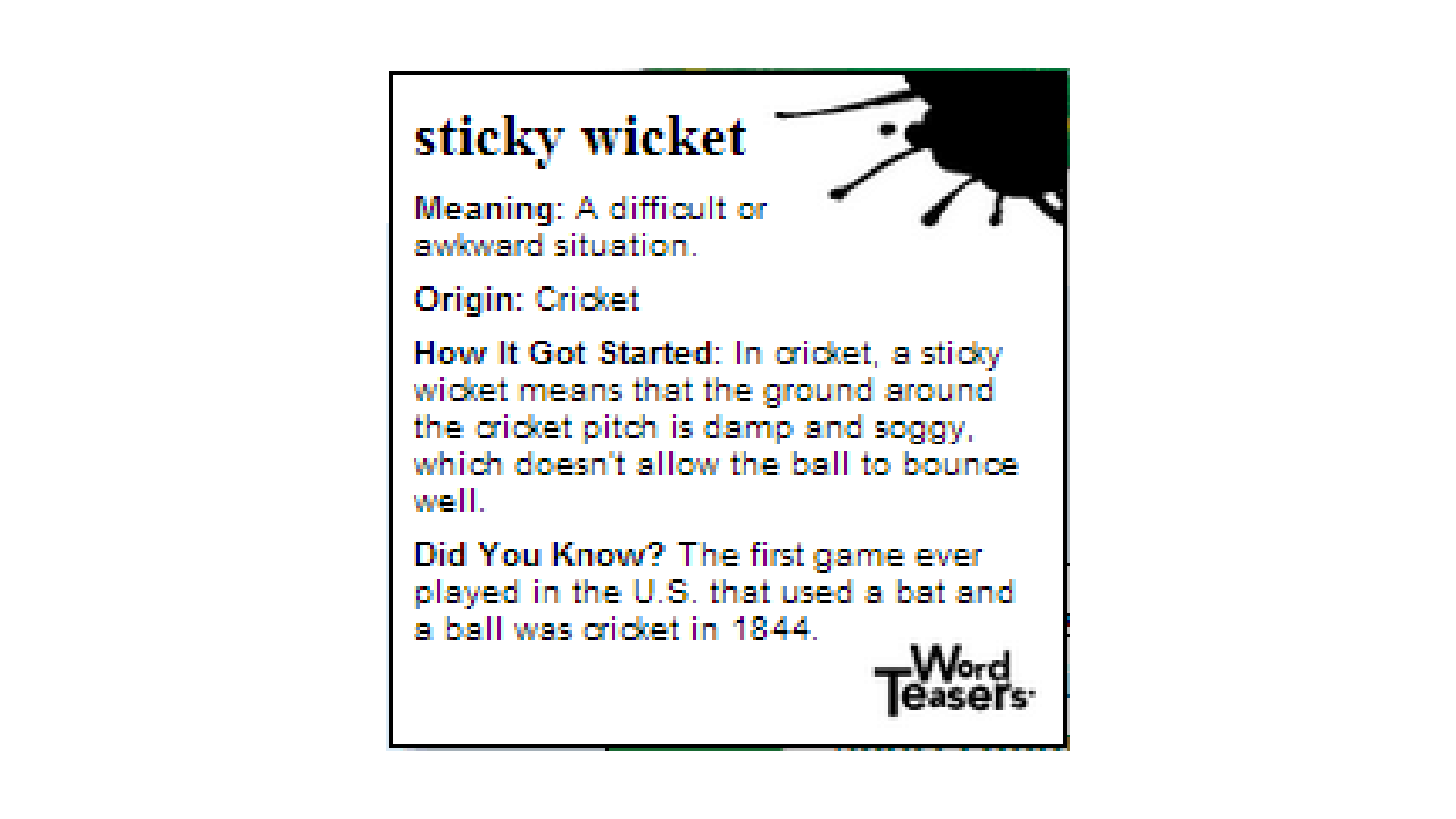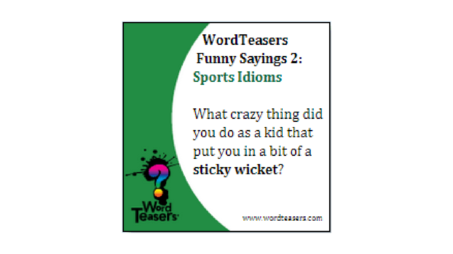 Kick-off some fun conversations with Word Teasers Sports Idioms! Inside the box, you’ll find 150 conversation starters featuring popular sports idioms. Whether you're a sports fan or just love wordplay, this deck is sure to ignite laughter and learning with every card.