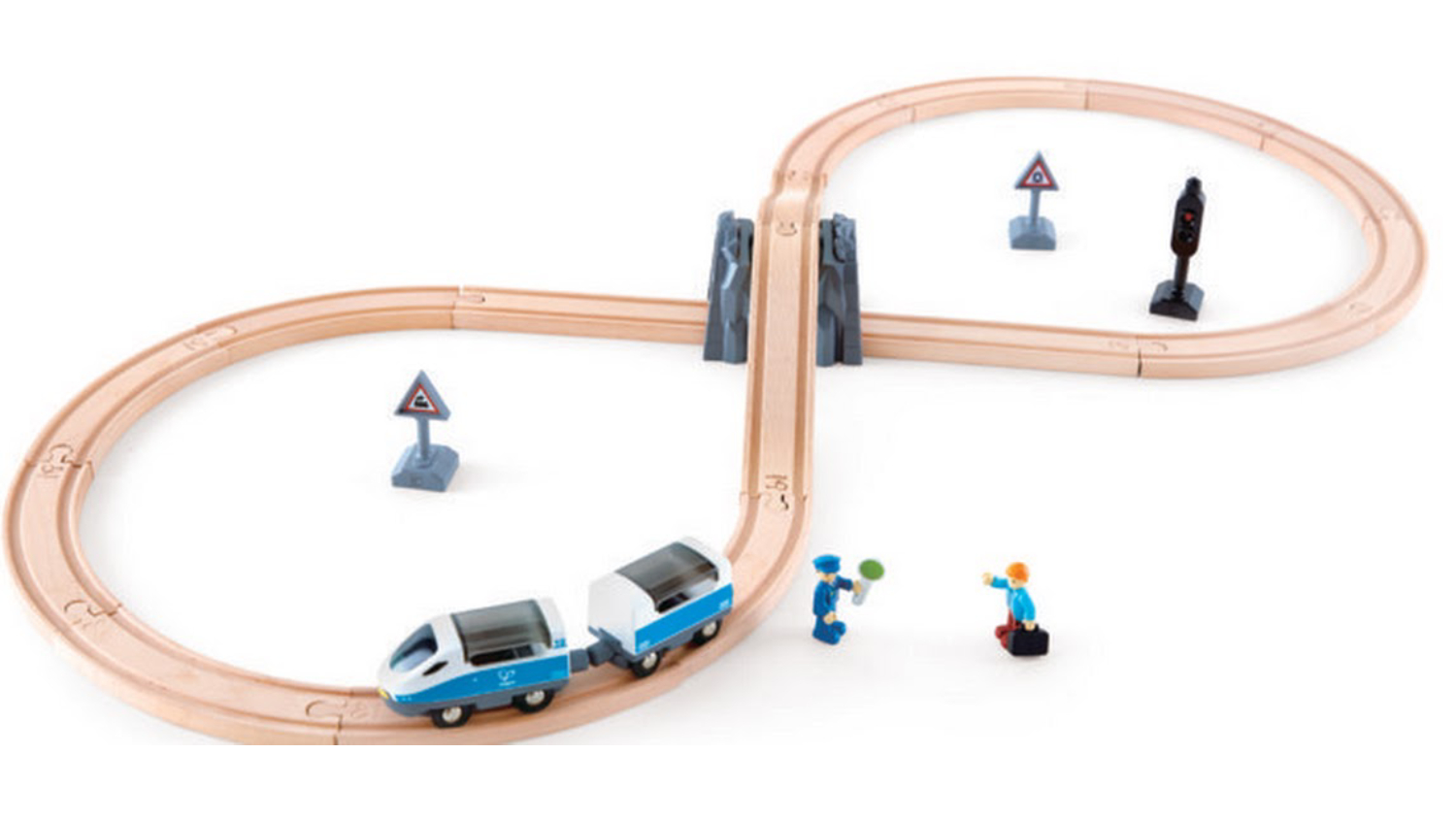 The Hape Figure Of 8 Safety Set is a fun and interactive way to teach your kids about safety signals. This educational toy is designed to help develop kids' object recognition abilities and educate them more about train safety. It includes a train, a conductor, a passenger, and various signals.