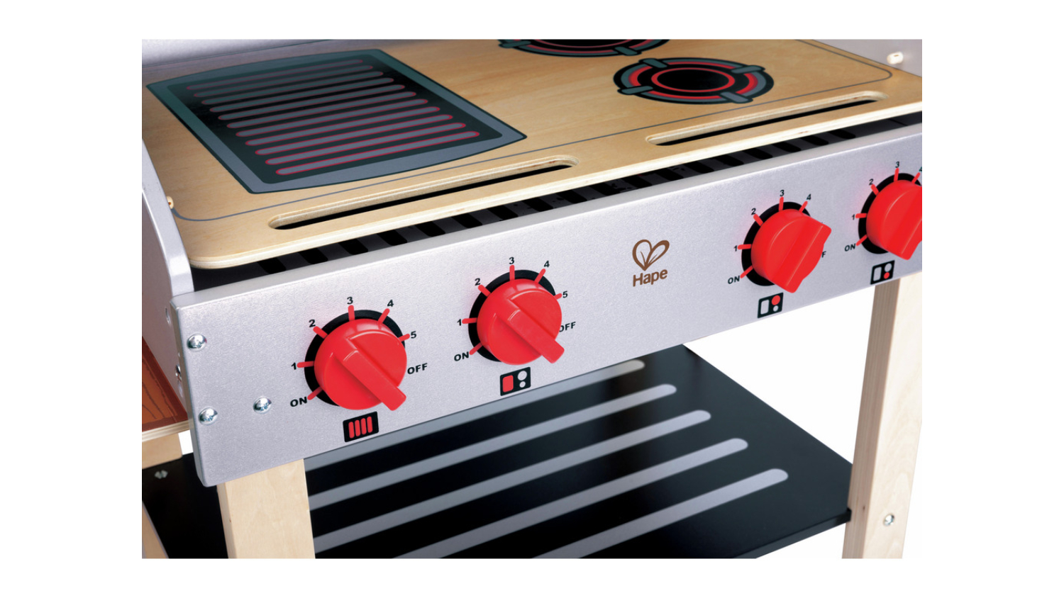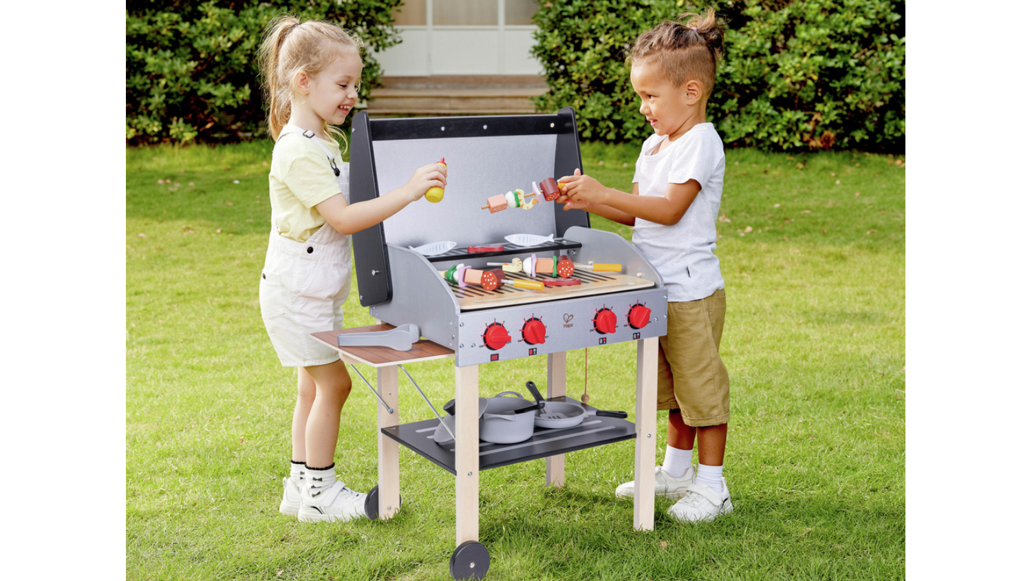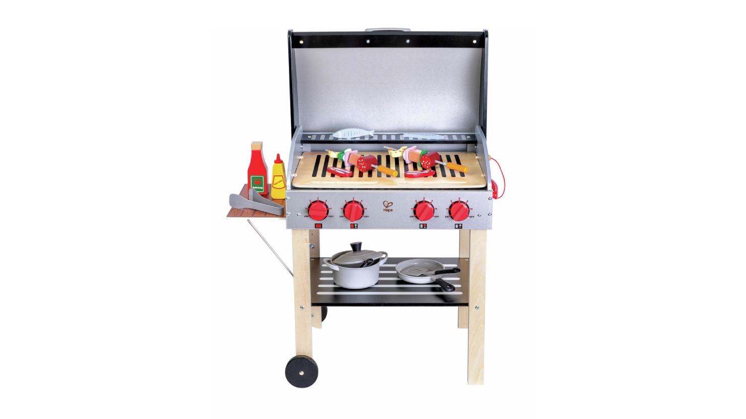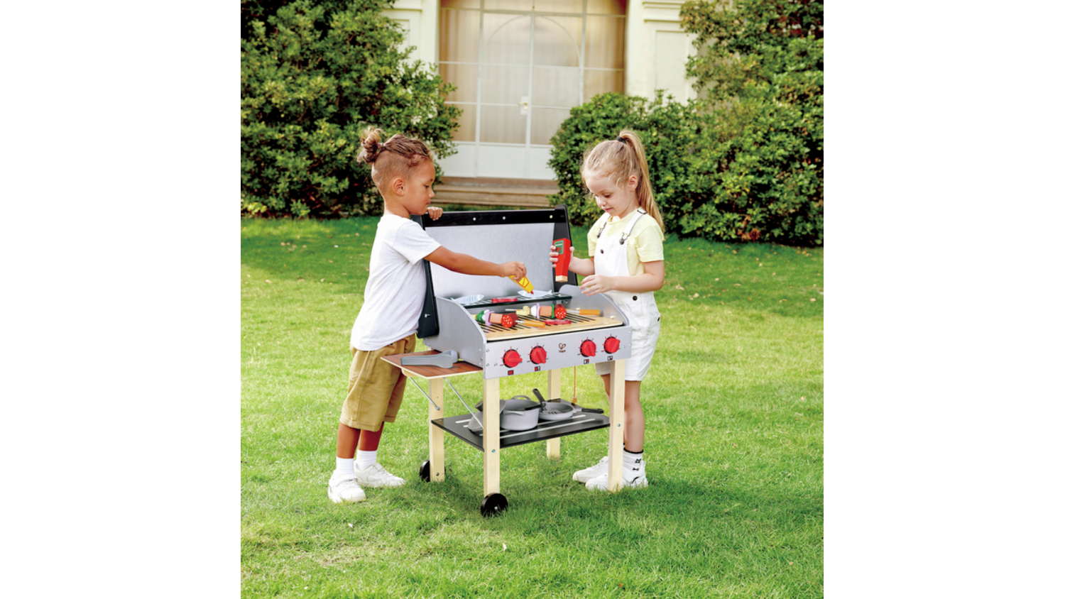 Watch your kids have fun cookouts! The Hape Gourmet Grill Playset includes a double-sided grate, collapsible side table, moveable wheels, open-and-close hood, and food accessories. Kids can grill, serve, and imagine endless scenarios while building social skills and creativity. It’s the ultimate role-play toy for little foodies.