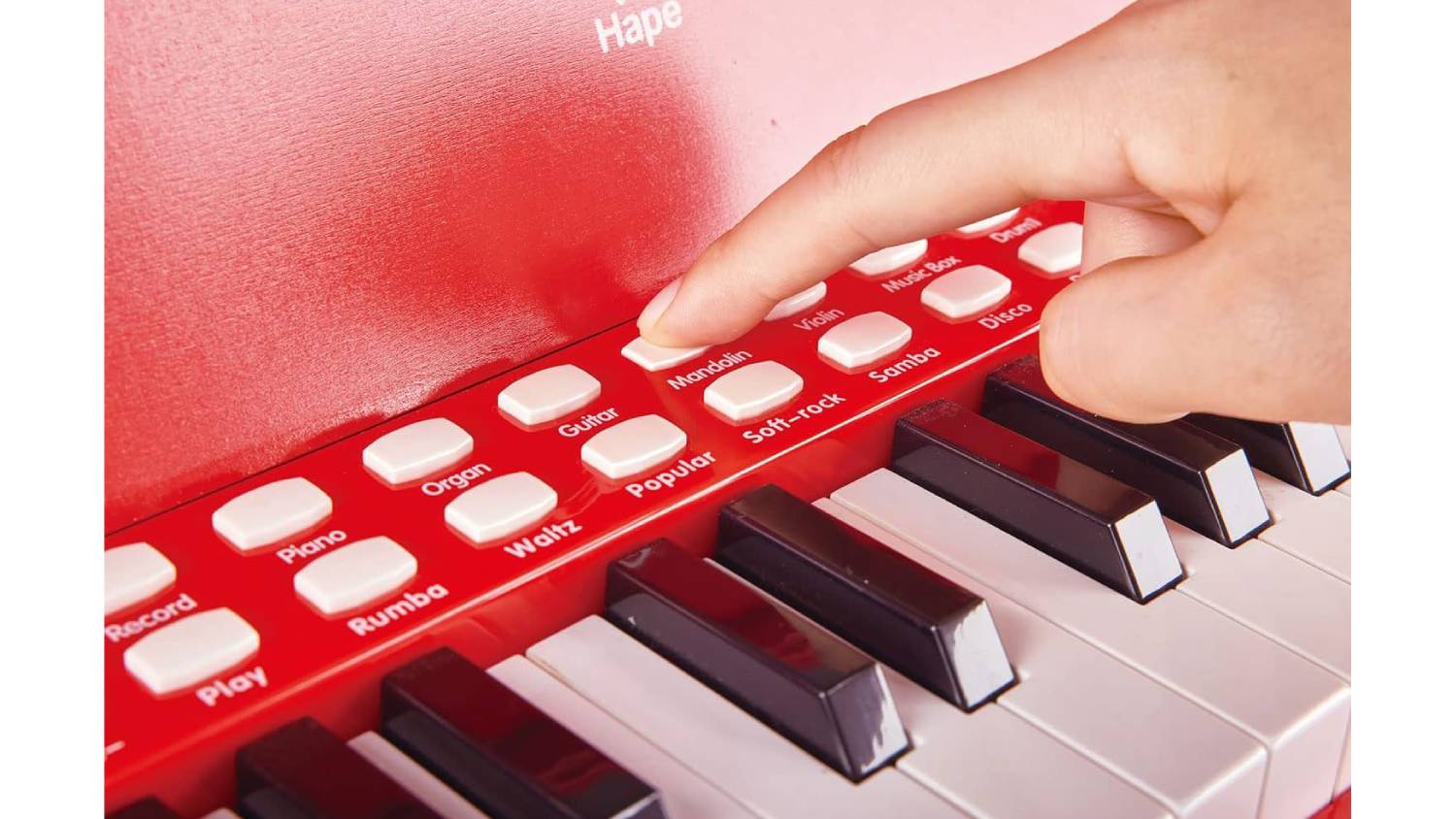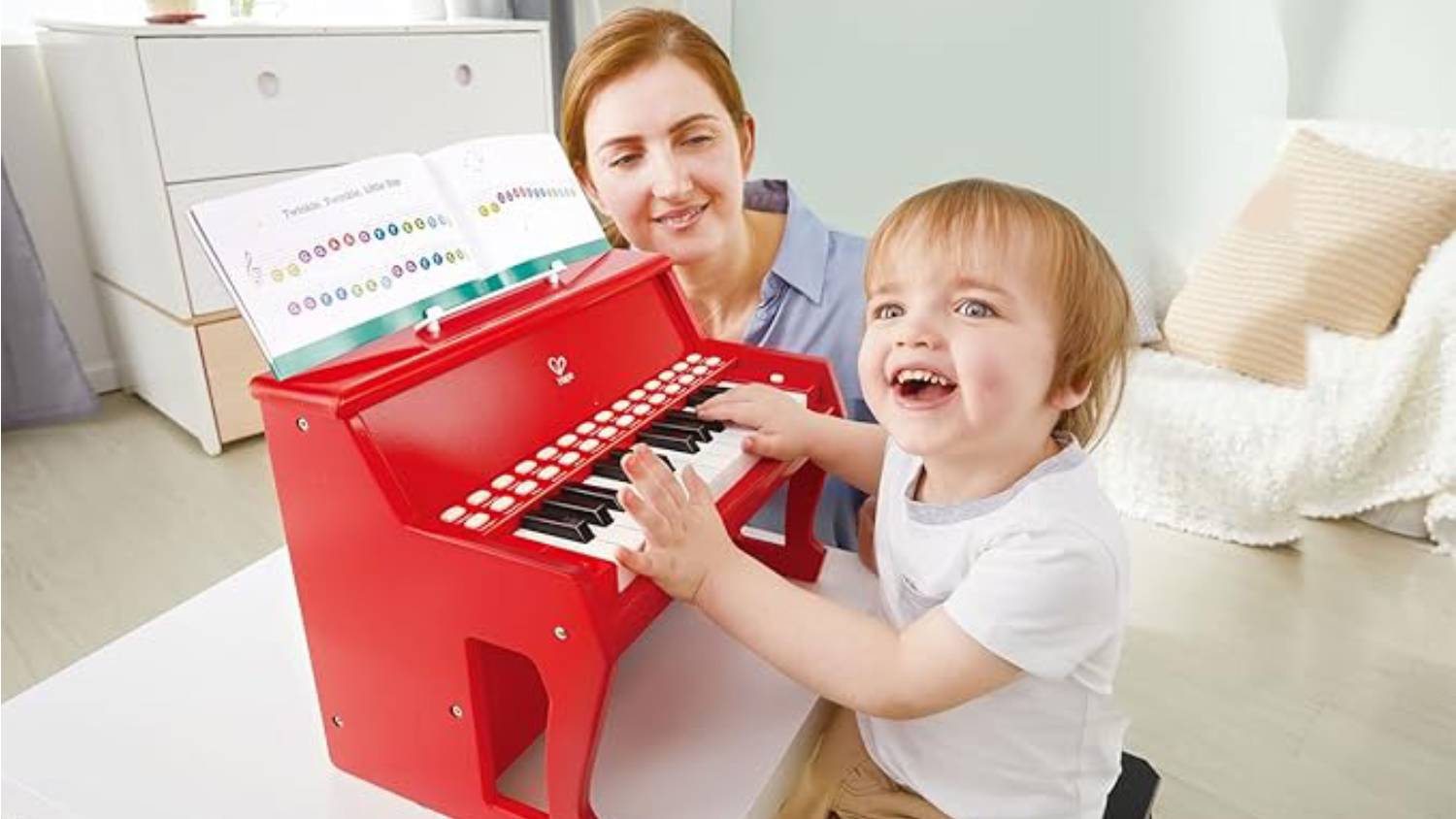 Unlock your child's inner musician with the Hape Learn With Lights Children’s Piano. This 25-key piano makes learning intuitive and fun. Kids can follow the light-up keys to learn songs or use the smart play function, which ensures every note is on-key. With six different musical styles, eight drumbeats, and 15 demo tunes, they’ll have endless ways to explore. The record and playback function also lets them hear their own musical creations, helping to boost confidence and prepare them for advanced musical learning.