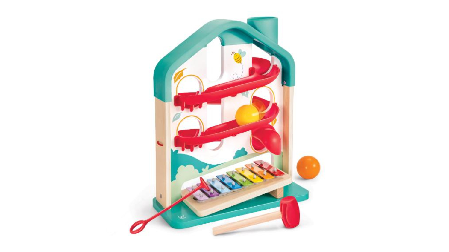 Make playtime a musical adventure with the Hape Musical Mansion Rolling Ball Maze! Navigate the colourful maze, or take out the xylophone board for individual melodic play. Pound the ball from the house chimney, and watch it roll along the tracks. Once it falls onto the rainbow-xylophone you'll hear crisp and sweet sounds.