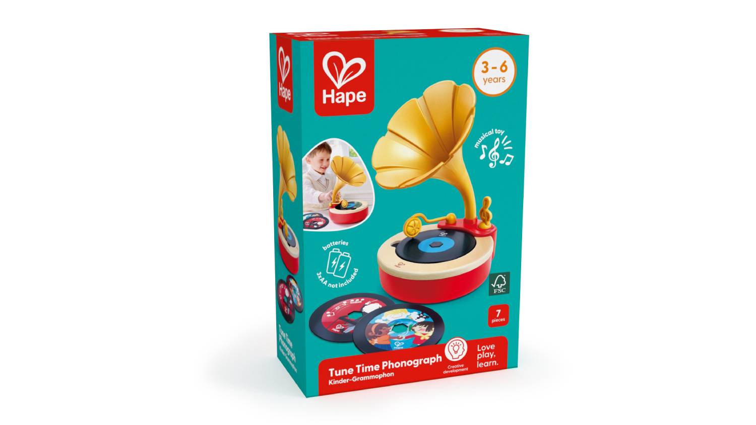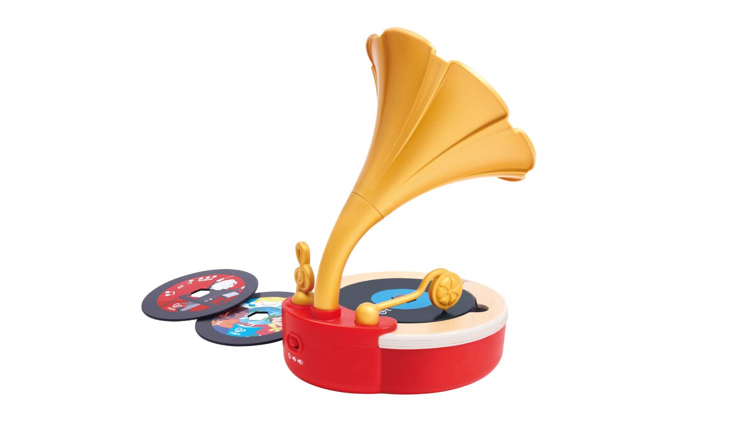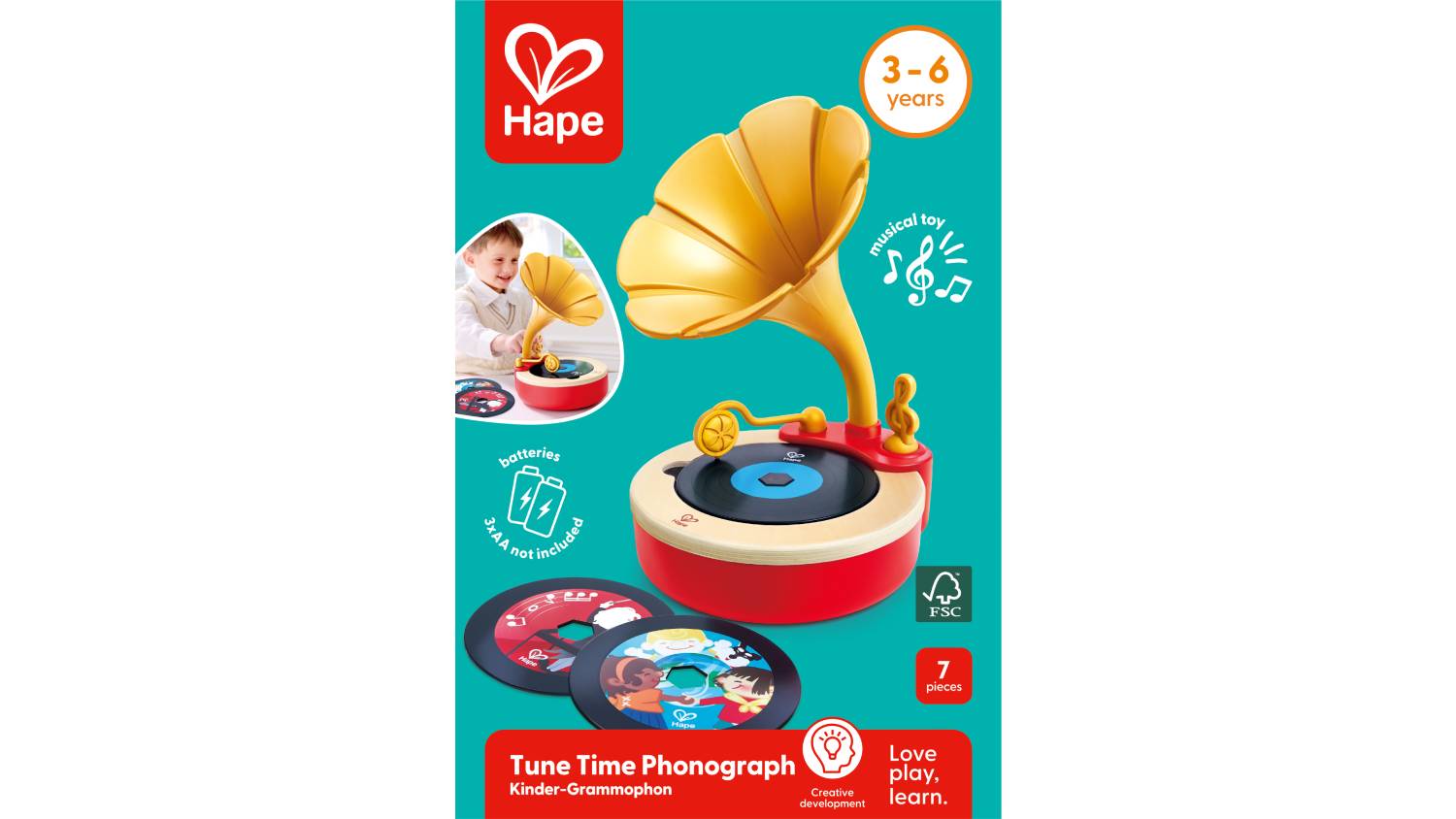 Get ready to rock and roll with the Hape Tune Time Phonograph Musical Toy. This functional music toy features a realistic design that will captivate your child's imagination. They can play the two included music discs to explore different genres, helping them develop their musical understanding. A special blank disc lets them record their own voice or songs, so they can unleash their inner artist and feel the satisfaction of hearing their own creations. It fosters a deeper connection to music and a love for creative expression.