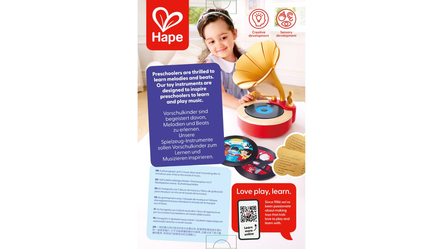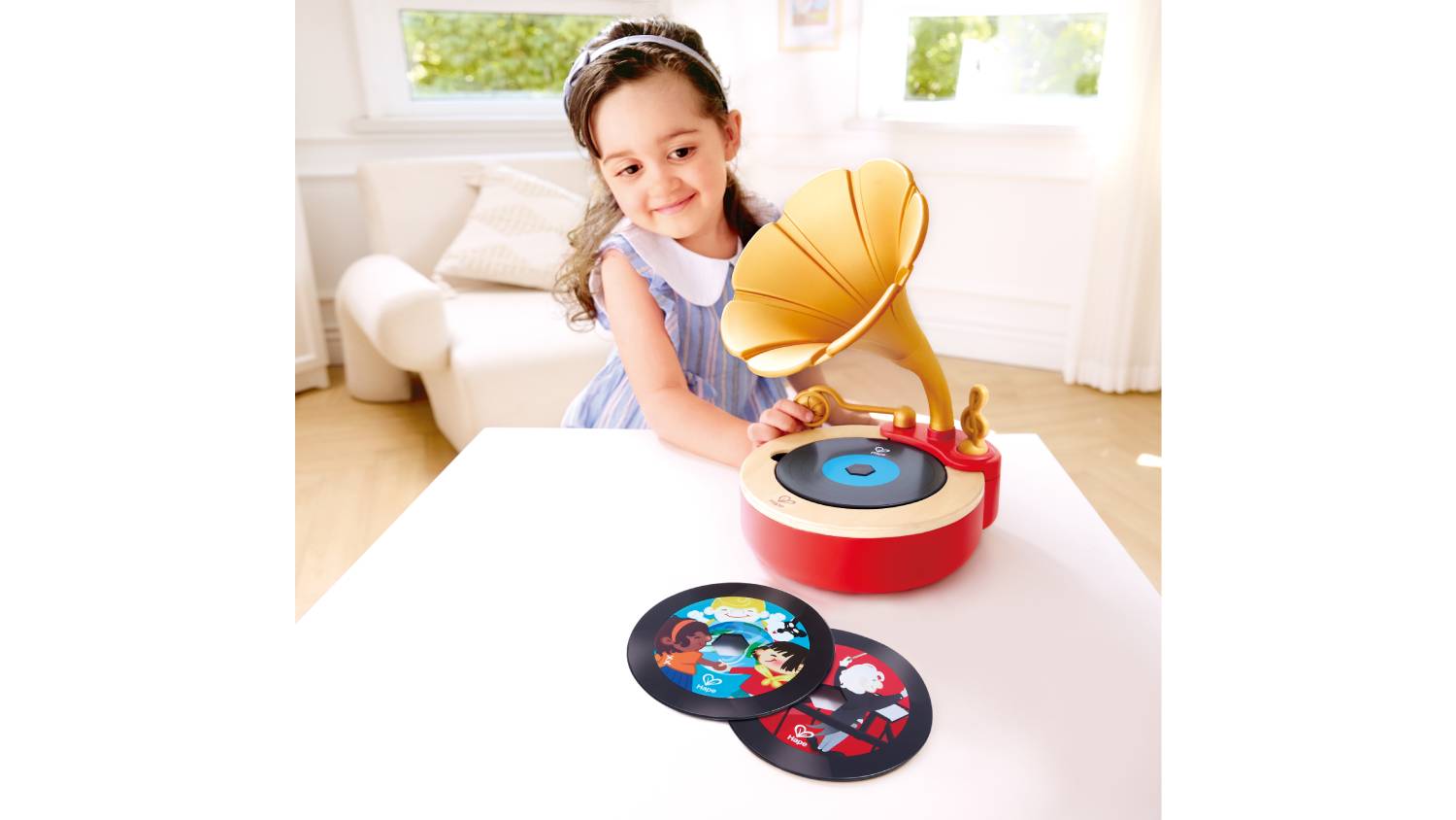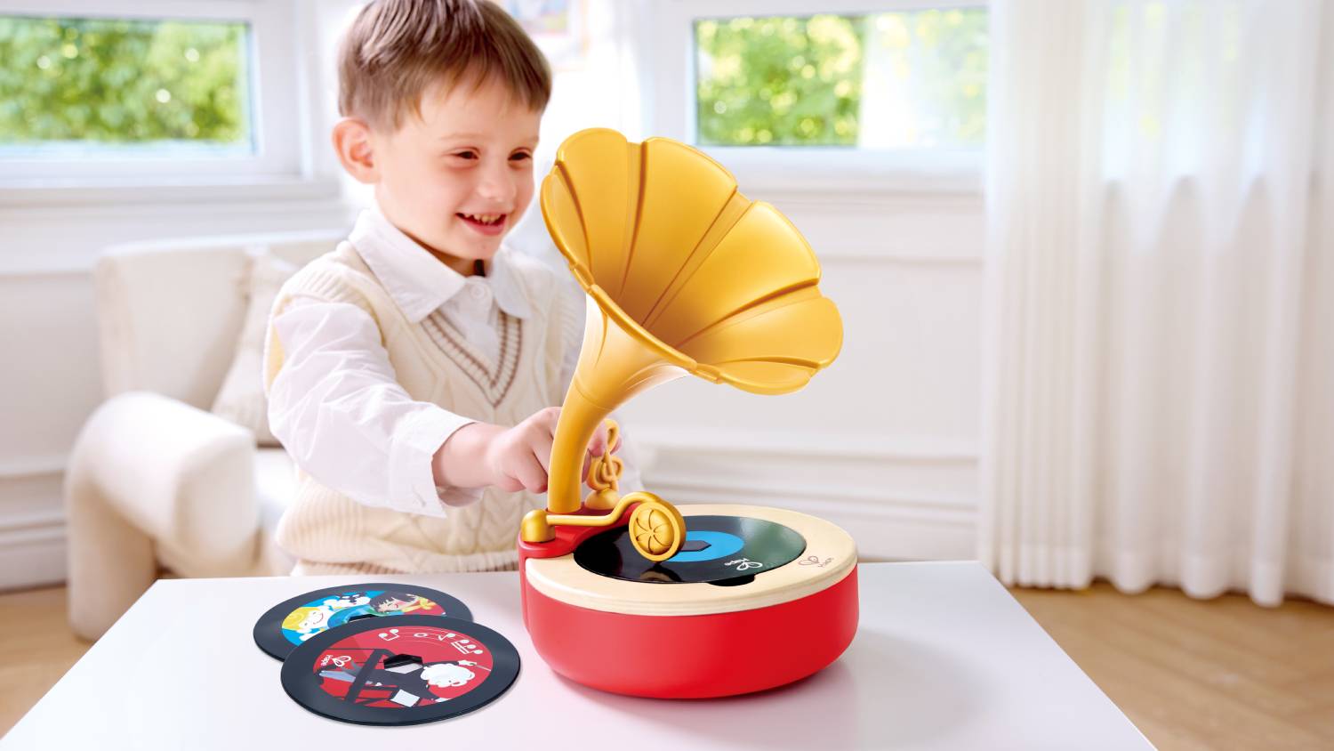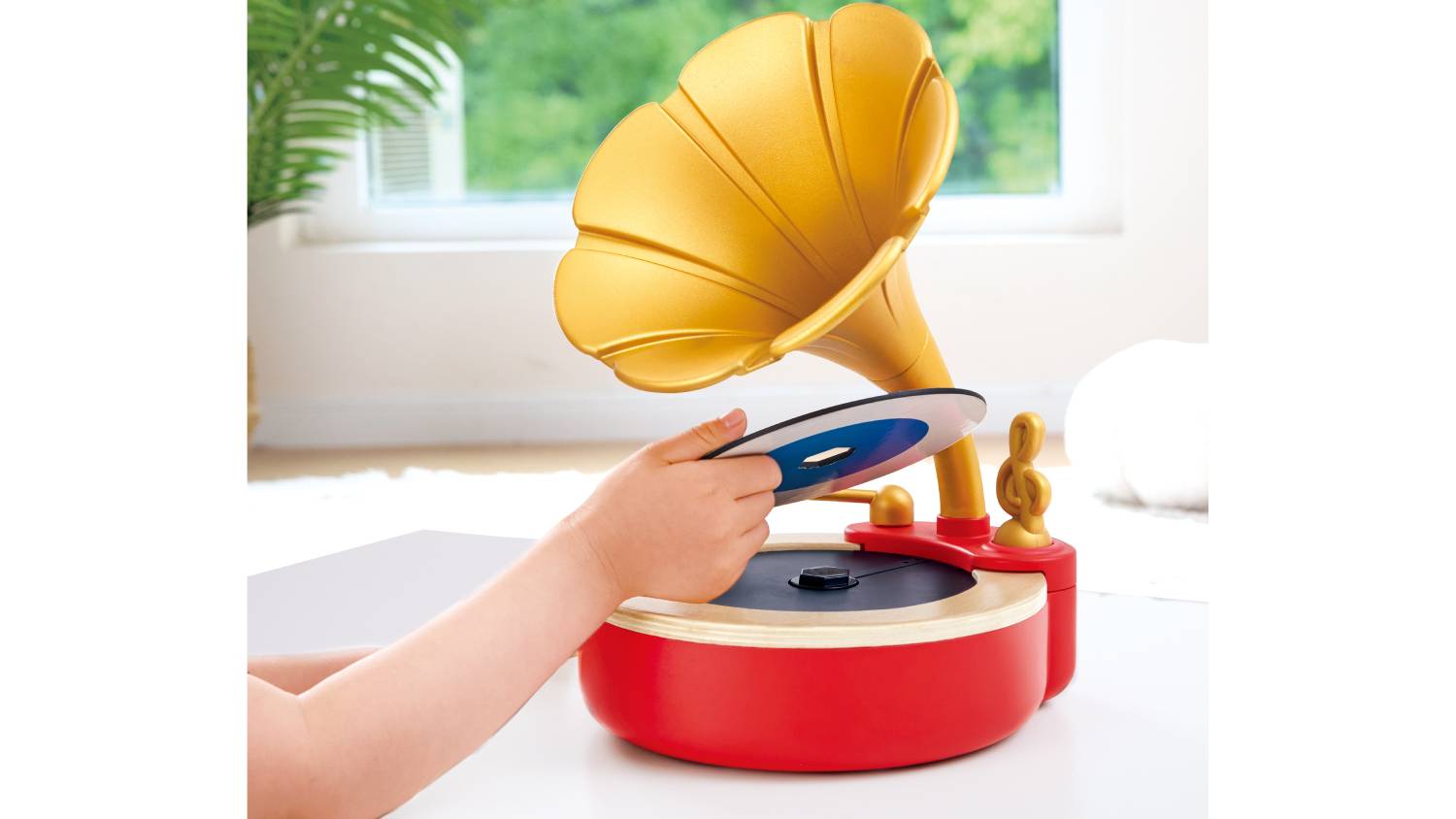 Get ready to rock and roll with the Hape Tune Time Phonograph Musical Toy. This functional music toy features a realistic design that will captivate your child's imagination. They can play the two included music discs to explore different genres, helping them develop their musical understanding. A special blank disc lets them record their own voice or songs, so they can unleash their inner artist and feel the satisfaction of hearing their own creations. It fosters a deeper connection to music and a love for creative expression.