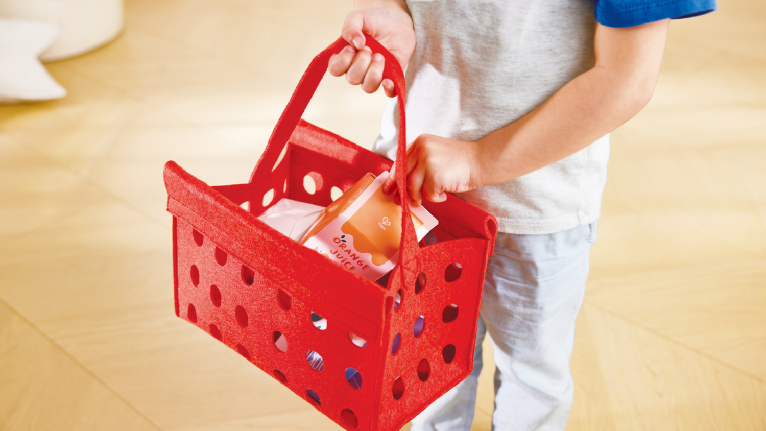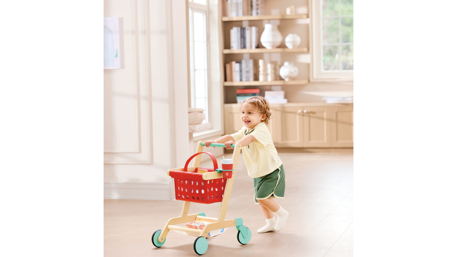 Encourage active, imaginative play with the Hape Twirl 'n' Shop Play Shopping Trolley. Designed with smooth-rolling wheels, a sturdy wooden frame, and four interactive food items, this toy helps kids develop motor, social, and language skills—all while having a blast “shopping” around the house.