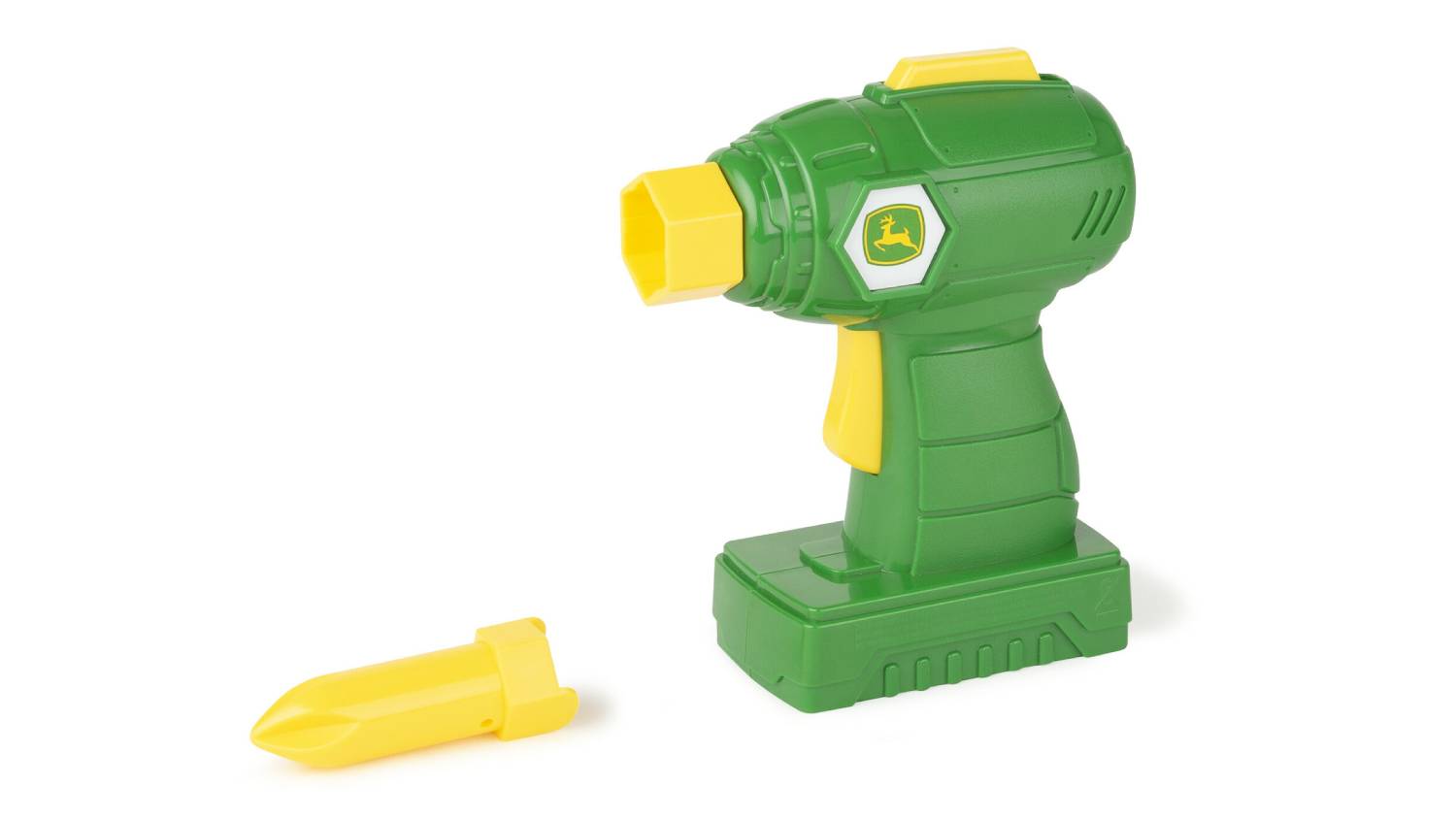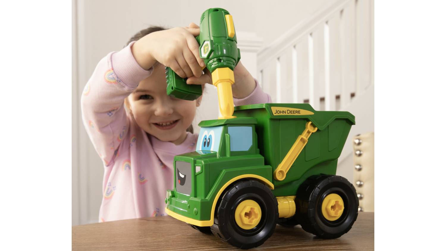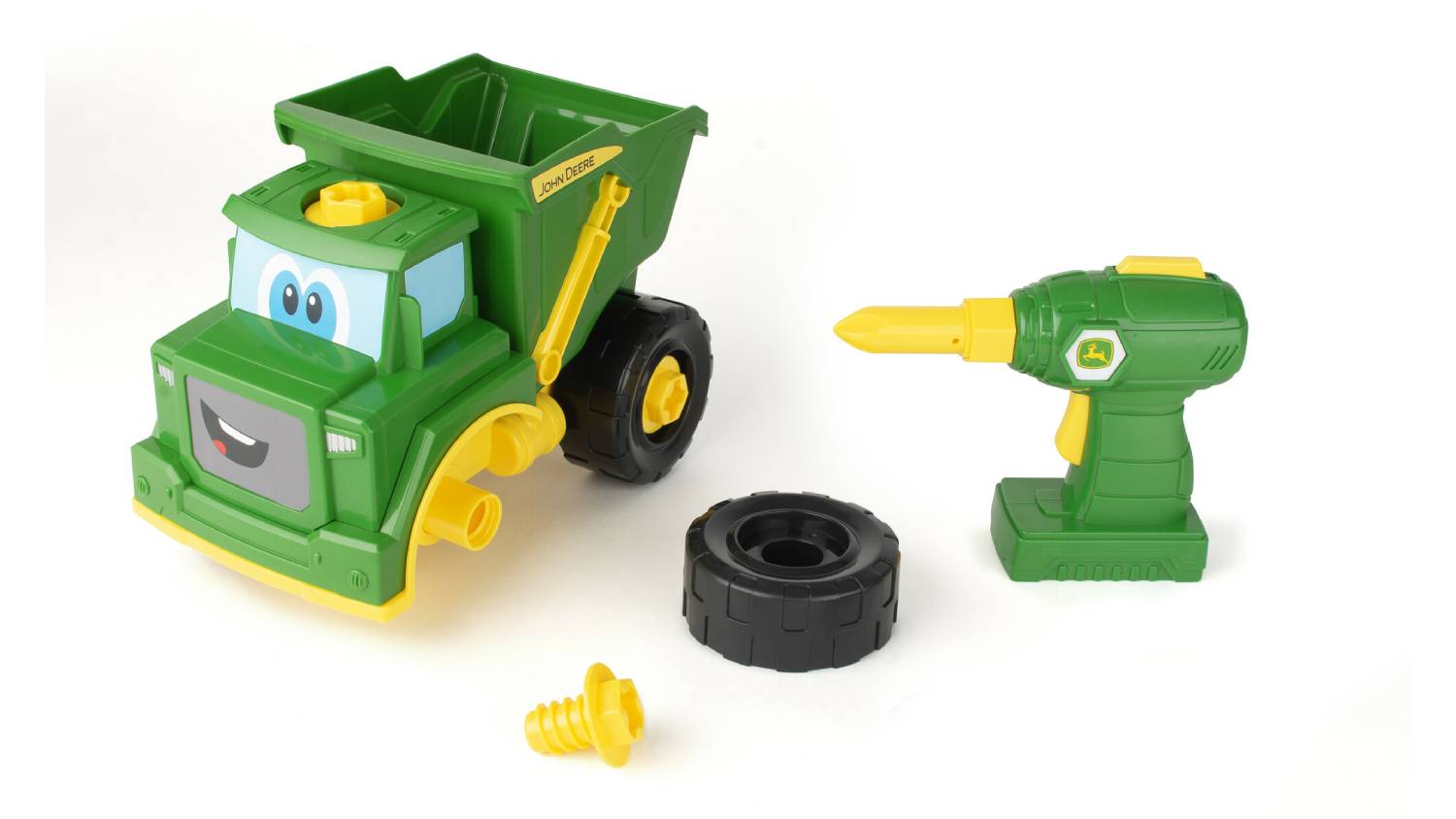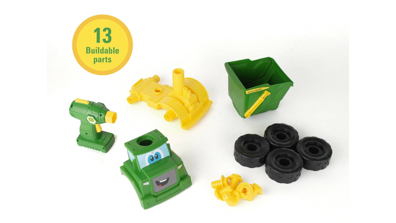 Dig into the fun with the John Deere KIDS Build-A-Buddy Dump Truck! This 13-piece construction toy includes a drill and one bit that lets kids take it apart and put it back together again, which is great for encouraging problem-solving skills. Made of chunky parts, it's easy for little hands to assemble and manoeuvre into place. This dump truck is also a great push-along toy, while its working dump bed lets kids haul around their favourite treasures.