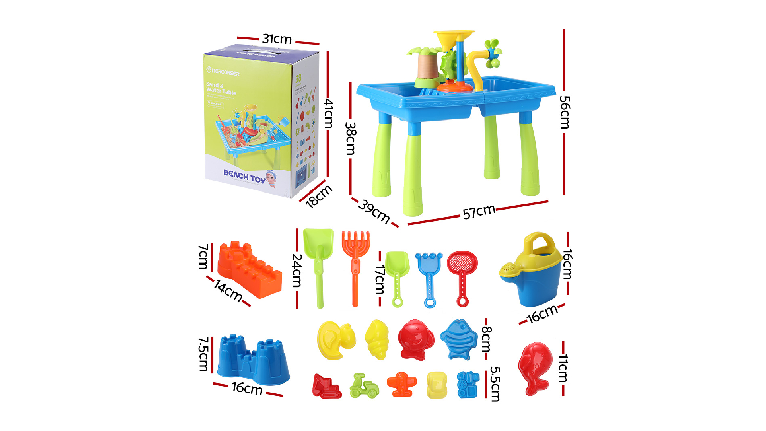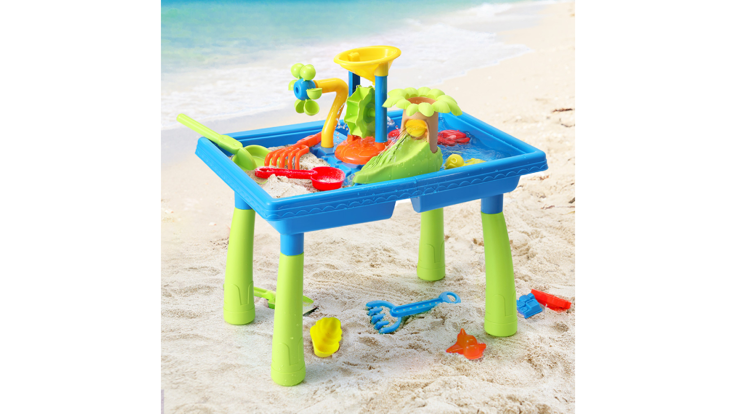 Get ready for splashy fun with the Keezi Kids Interactive Plastic Sand & Water Play Table – a must-have for your children's playtime! This set is a treasure trove of delights, with lots of individual pieces and many moving parts. Constructed from non-toxic and eco-friendly materials, it is perfect for kids aged three years and older. It is the perfect companion for both backyard setups and beach outings.