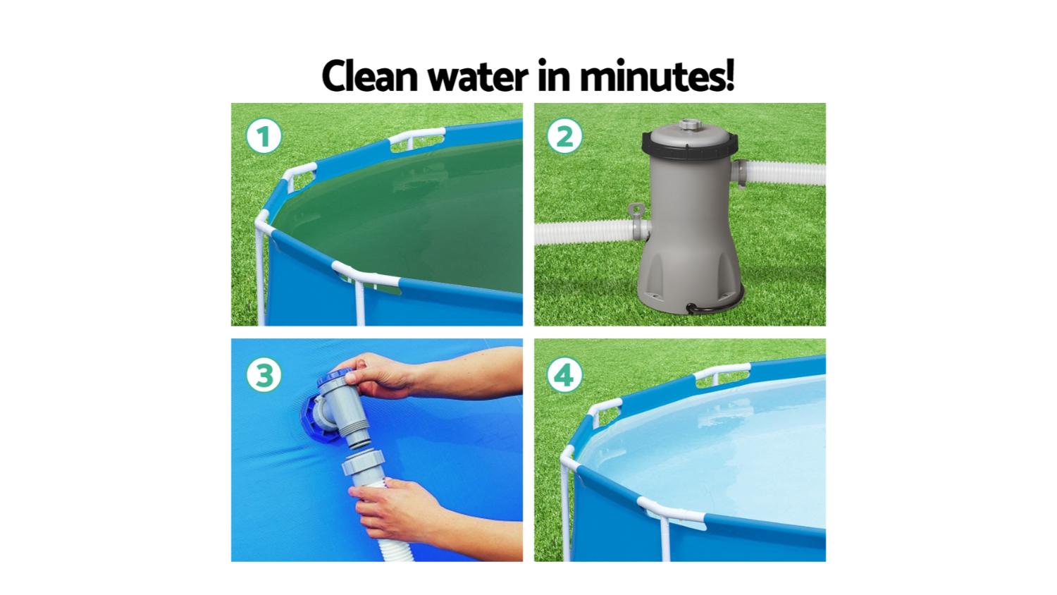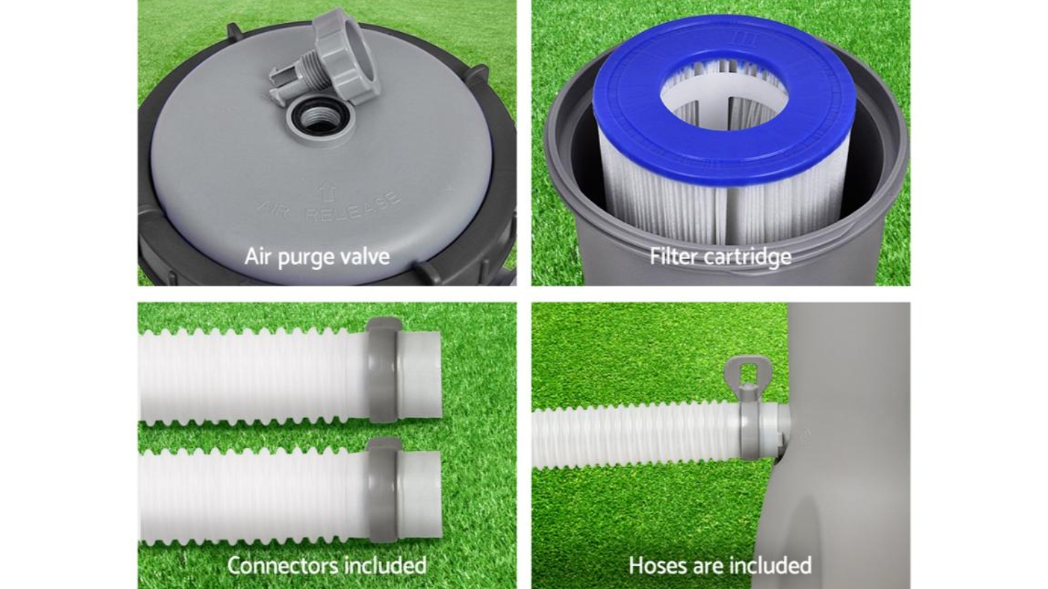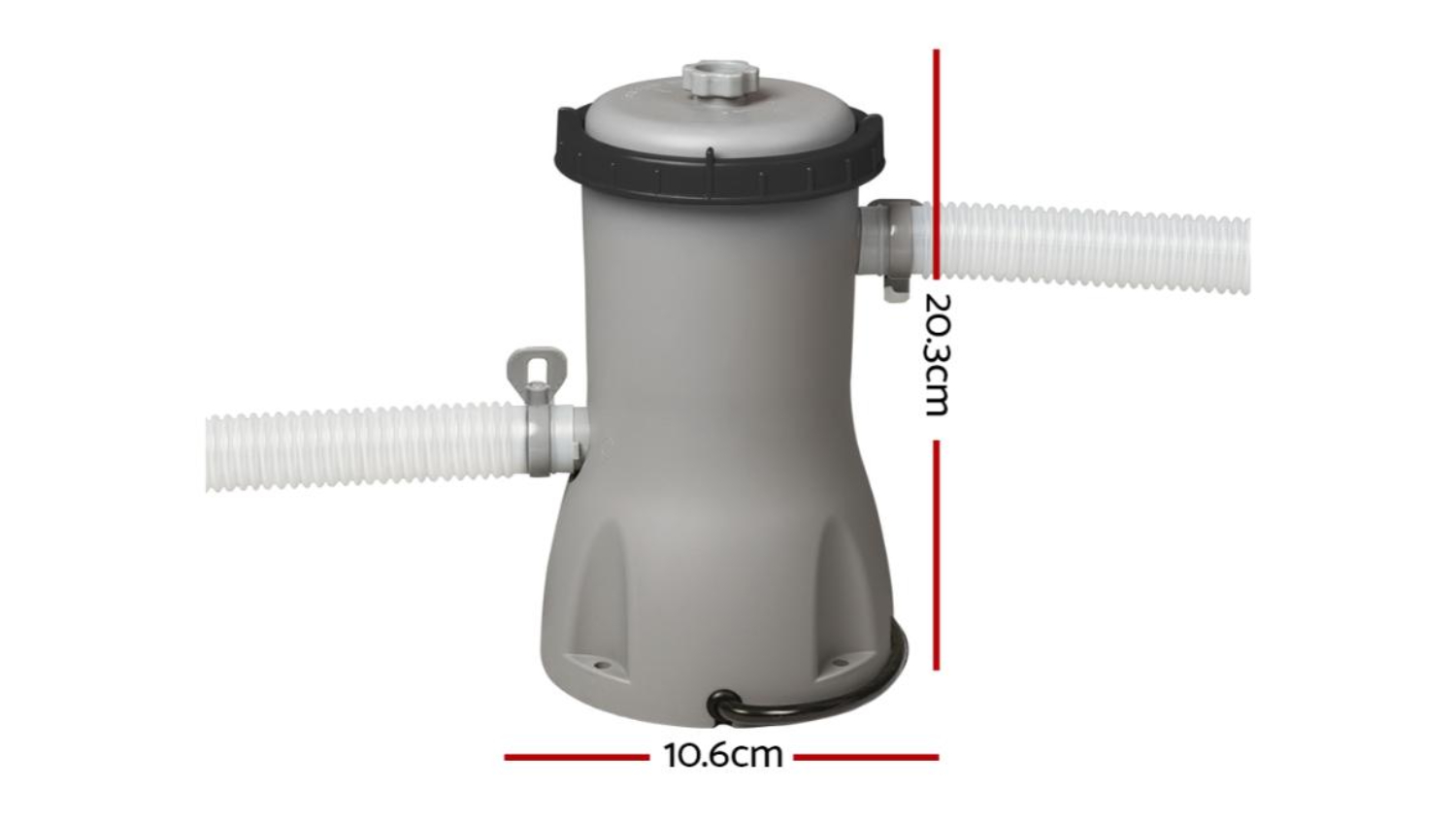 Simplify your pool maintenance with the Bestway Flowclear Filter/Cleaner Pump 2006L/H. Tailored for compatibility with Bestway above-ground swimming pools, this pump operates at a powerful rate of 1249 litres/hour, ensuring your pool water is free from contaminants. The air purge valve prevents pressure build-up, making your pool care routine a breeze. Complete with a filter cartridge and adaptors for pool valves, this pump is ideal for pools ranging from 1,100 to 17,400 litres (300 to 4,600 gallons).