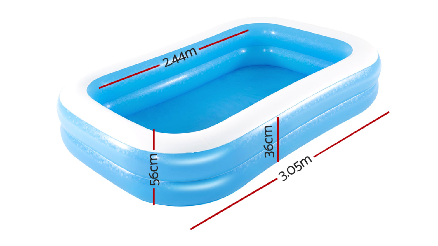Transform your backyard into a haven of aquatic joy for your little ones and their pals with Bestway Inflatable Pool Rectangle! Crafted from durable pre-tested vinyl and fortified with triple-ply side walls, this above-ground pool ensures endless water delights. Its robust I-beam construction and extra-wide side walls ensure stability, while the child-friendly border adds a touch of safety.