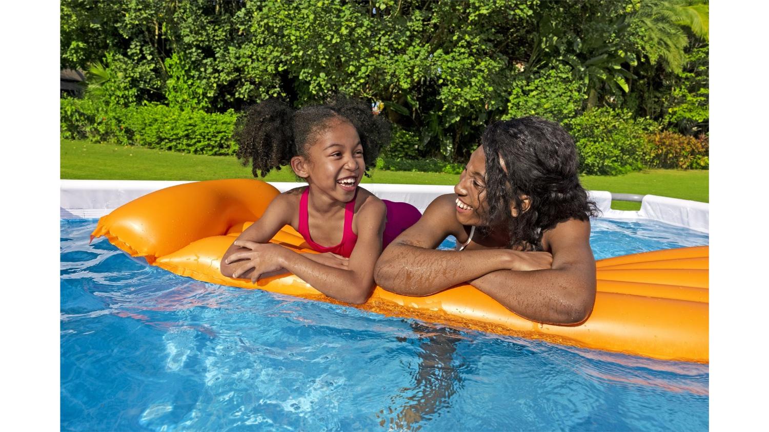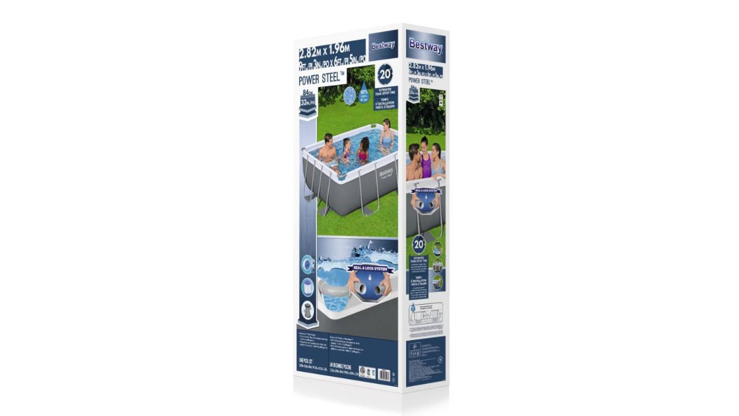 Dive into summer bliss with the Bestway Power Steel Above-Ground Swimming Pool 2.28 x 1.96 x .84m! This backyard oasis boasts Tri-Tech material for unwavering strength, a rust-resistant coating for seasons of fun, and a secure Seal and Lock system for peace of mind. Ditch the chemical fuss with the ChemConnect dispenser, and transform your patio into a splash-filled paradise.