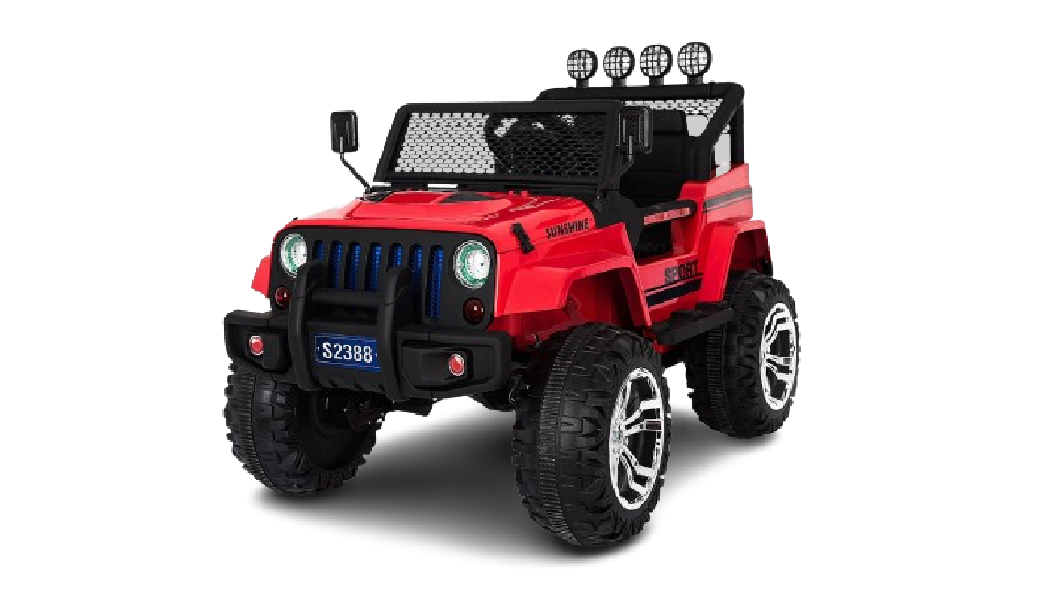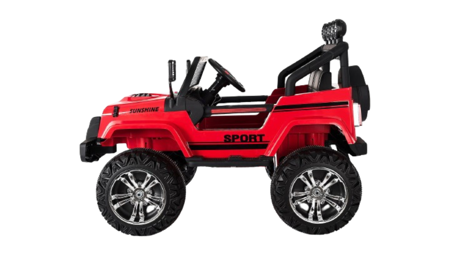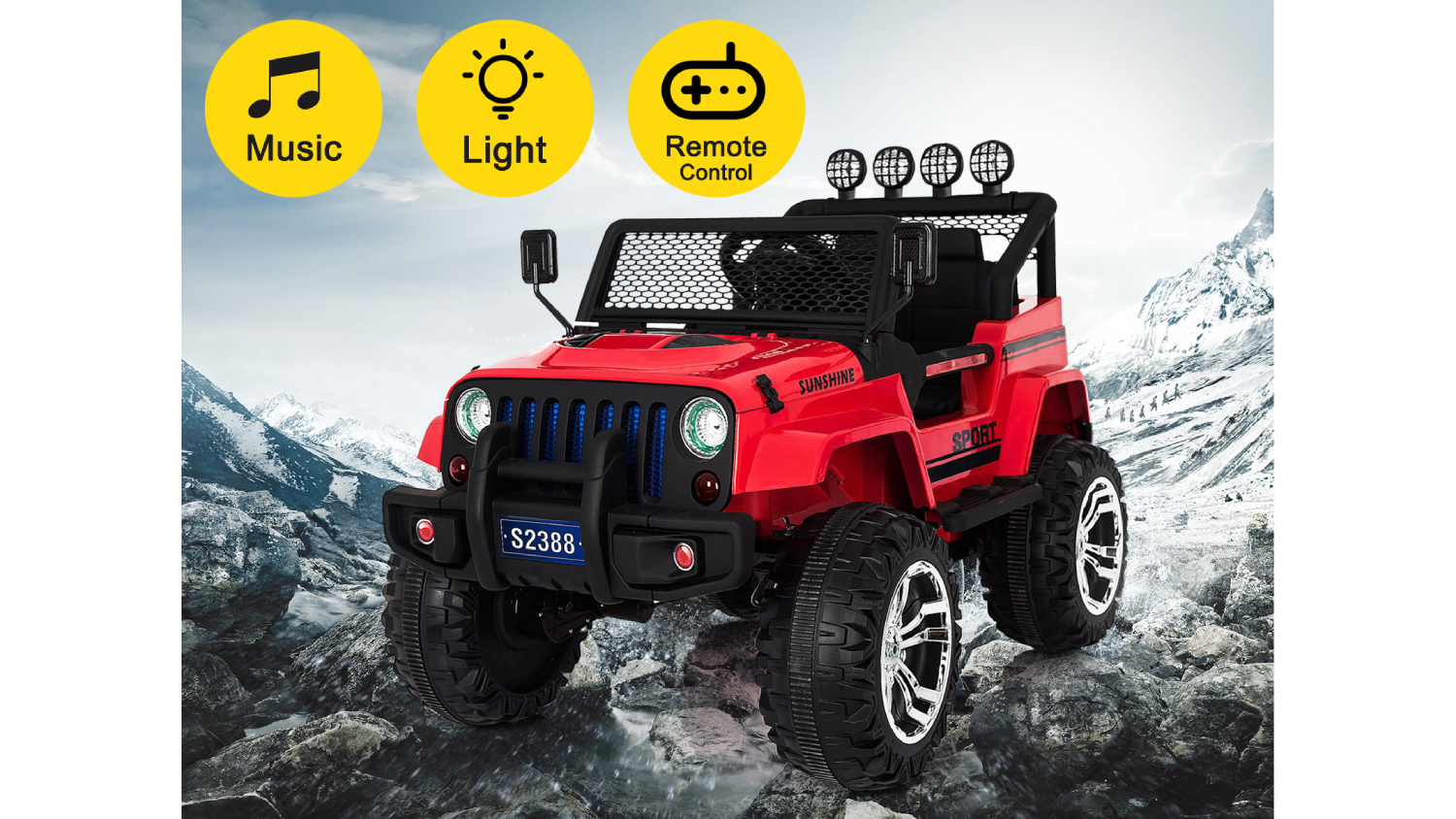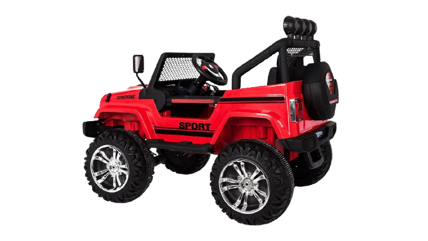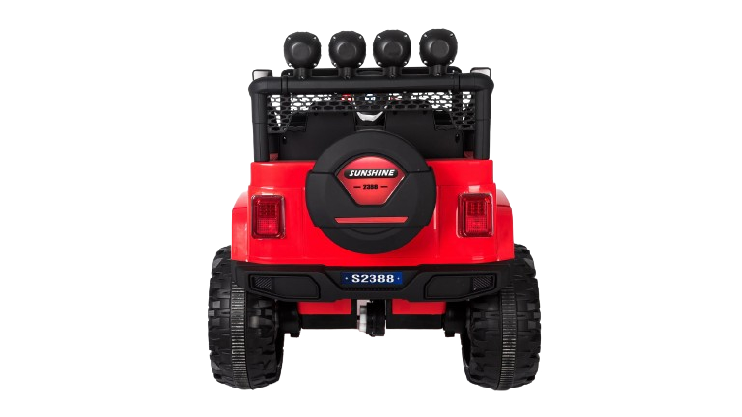 Featuring a stunning design and fun built-in songs, the TSB Living Ride On Car - Red Jeep makes the perfect gift for your little one. The one-push start button, battery level indicator, dual opening doors, and side rear-view mirrors contribute to an immersive driving experience. The high-quality suspension system ensures stability, while the remote control provides added safety.