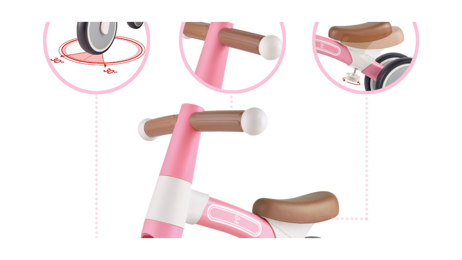 Youngsters will have a blast riding around the neighbourhood with the Hape First Ride Balance Bike! This ride lets little ones learn how to balance on three wheels, all while having a blast. It is constructed from a lightweight aluminium alloy frame with TPU foaming wheels. This bike lets you adjust the saddle horizontally to suit your child's arm length. Furthermore, it helps your children develop muscle coordination, balance and a sense of direction.