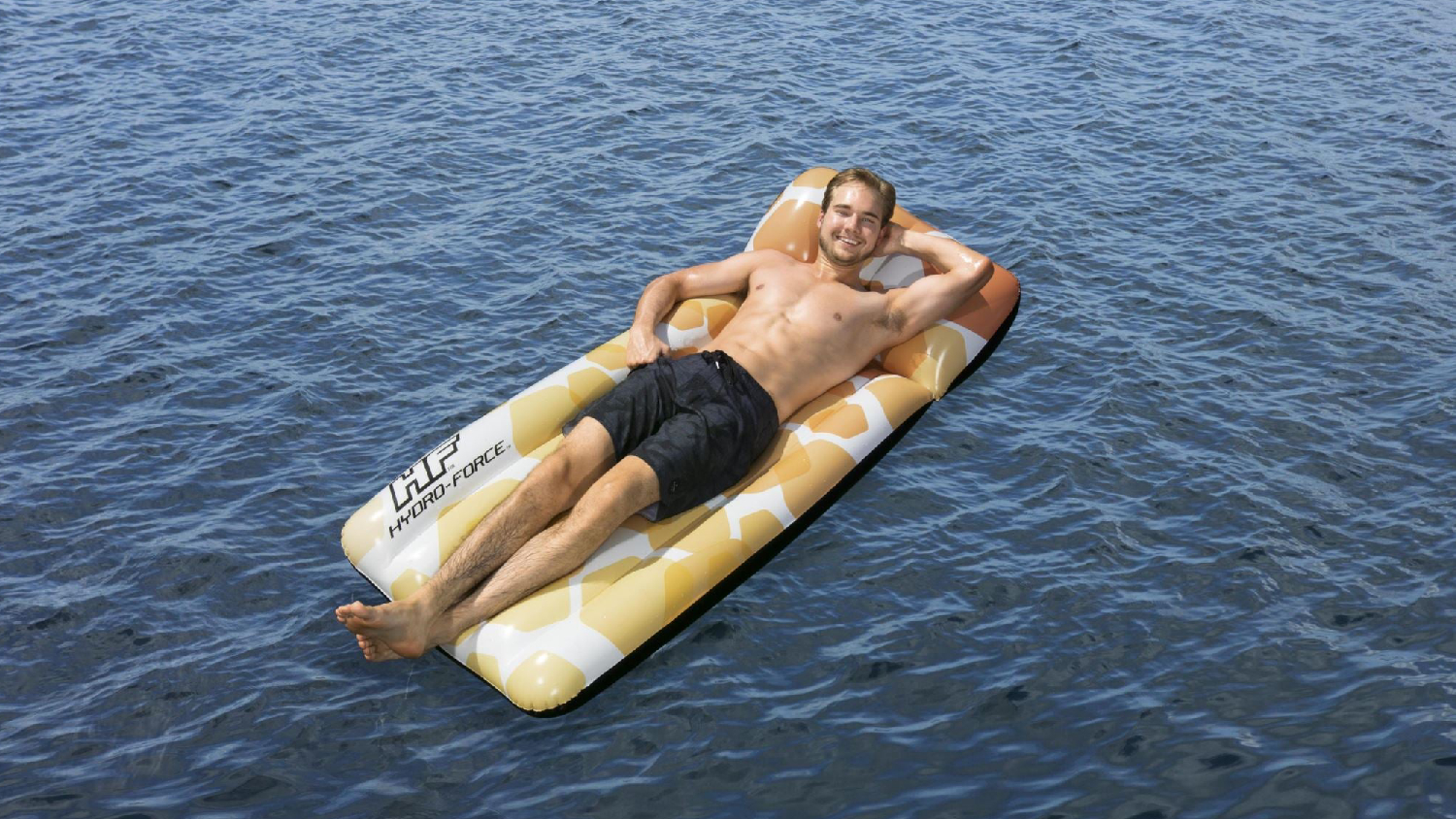 Unleash your inner water enthusiast with the TSB Living Hydro-Force Inflatable Sunbed. This game-changing float is designed to transform your ordinary pool day into an extraordinary experience. Constructed from durable high-gauge PVC, the Sunbed is built to withstand the splashes and spills of summer fun. It also features a pillow that provides a haven of comfort.