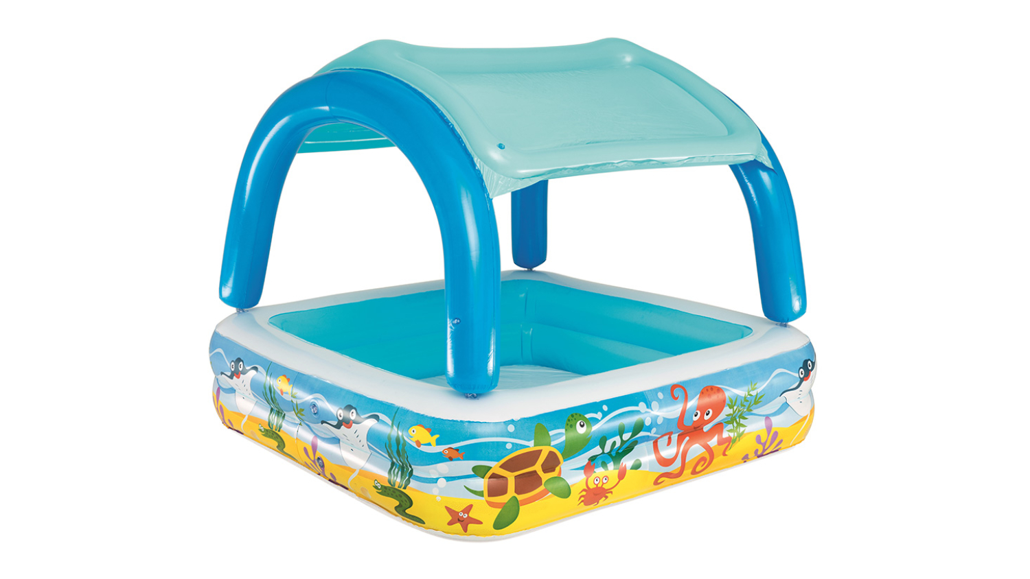 Transform your backyard into the ultimate summer retreat with the Bestway Inflatable Pool with Removable Canopy Sunshade! The pool is your gateway to non-stop fun. Sun safety is a priority with the removable UV canopy sunshade. Setting up this play pool is also a breeze, and maintenance is a cinch with the convenient inflating valve. A repair patch is also provided for emergency leaks to keep the splashing time going.