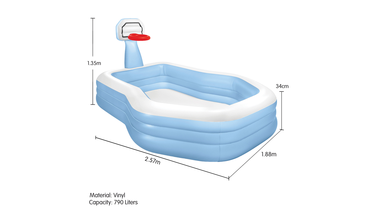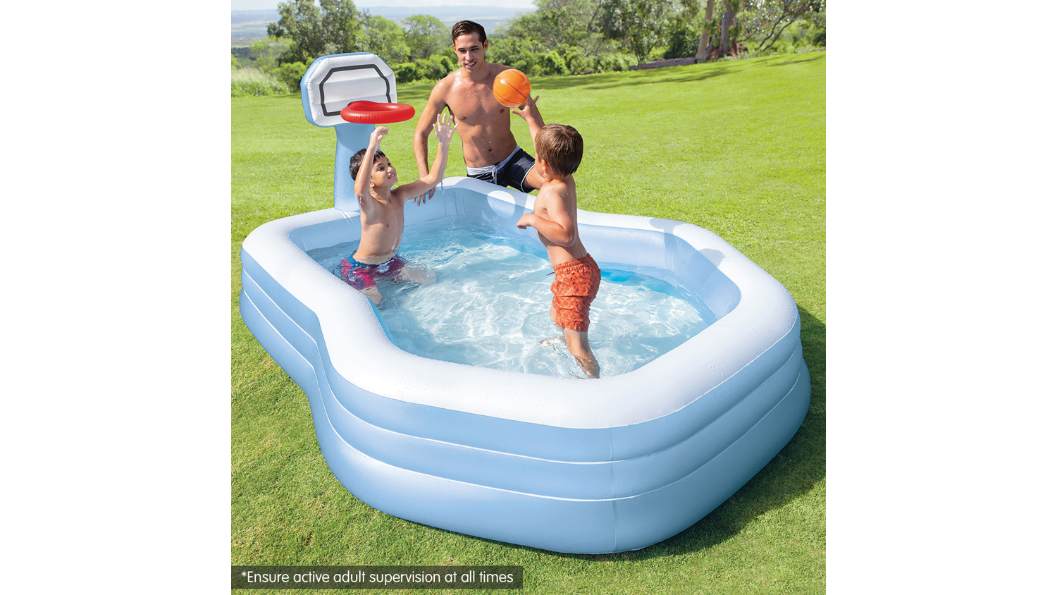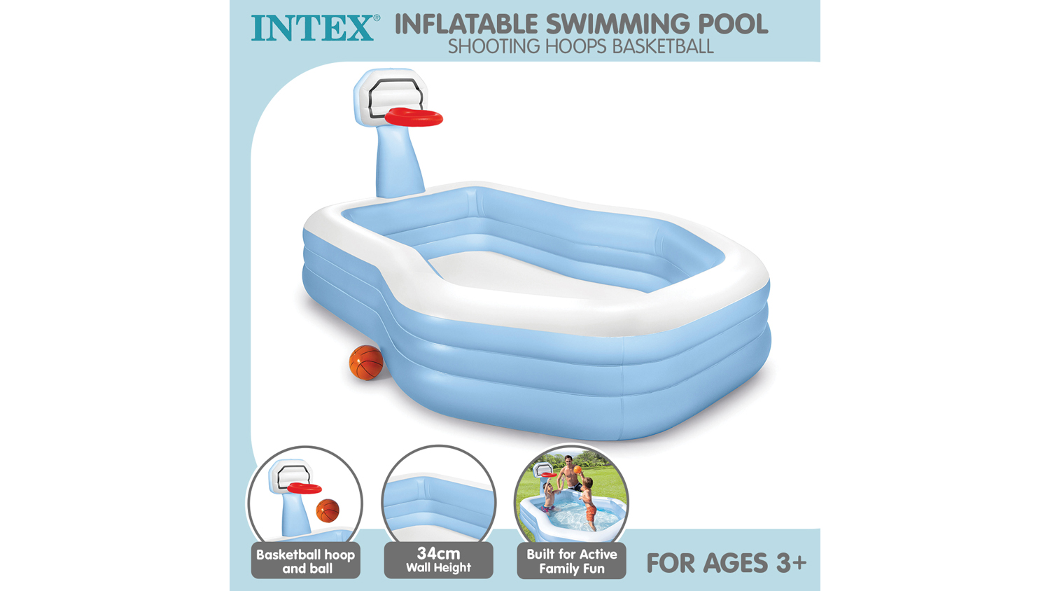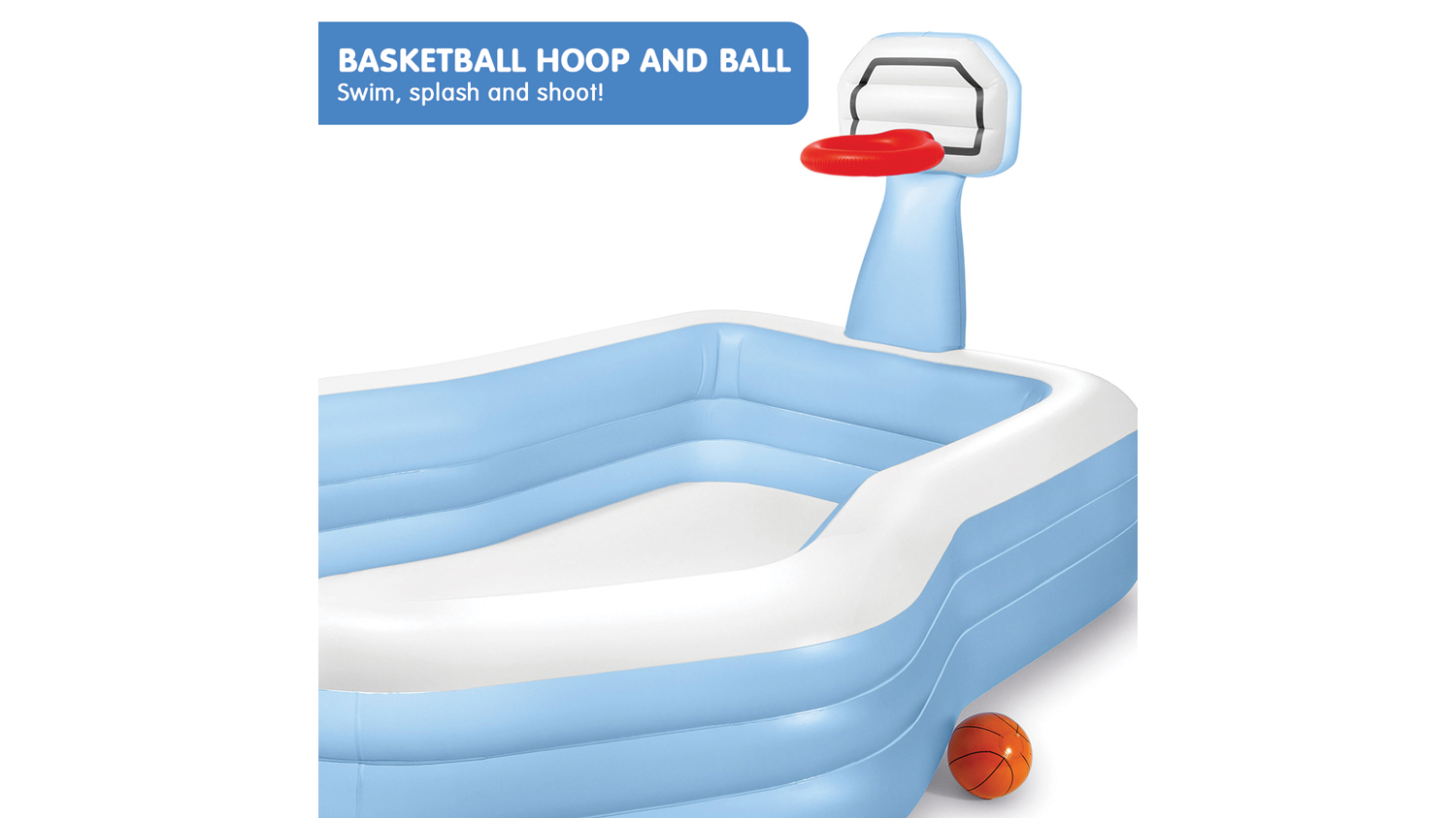 Watch your little ones do a slam dunk and enjoy splashing away in this adorable Intex Shootin Hoops Inflatable Pool! A perfect summer activity for kids, this kiddie pool features a built-in basketball hoop and an orange ball. It also measures approximately 101” (L) x 74” (W) x 51” (H) and can hold up to 180 gallons of water, ideal for medium to large-sized backyards.