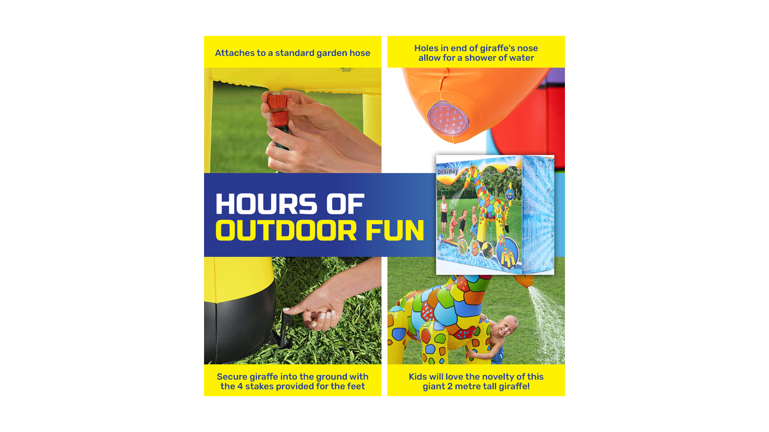 Unleash the fun and beat the heat with our remarkable Jumbo Inflatable Giraffe Sprinkler! This eye-catching and whimsical sprinkler is sure to be the star of your backyard. Standing tall and vibrant, it adds a touch of magic to any outdoor setting.