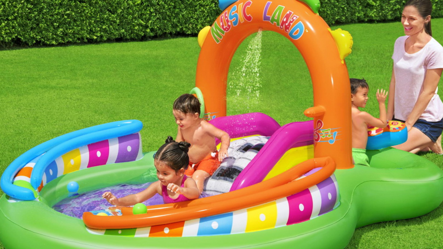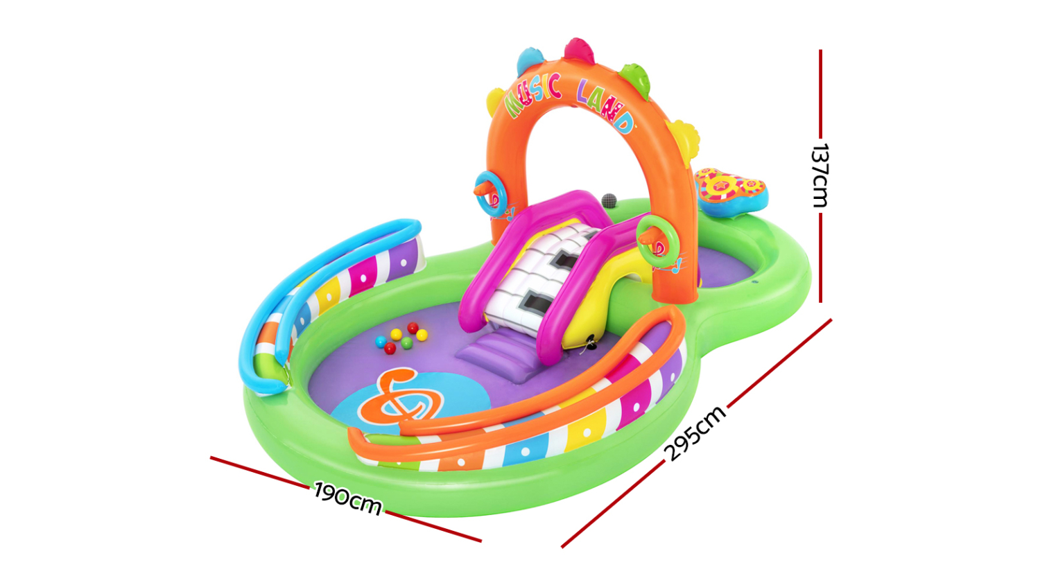 Make a splash with the Bestway "Music Land" Inflatable Kiddie Pool – the ultimate haven of fun and fantasy for your little ones! This wonderland boasts inflatable musical instruments, like a microphone and a drum. The built-in water sprayer and detachable slide turn playtime into a refreshing experience. Easy to set up and store, this pool is the perfect addition to your summertime adventures.
